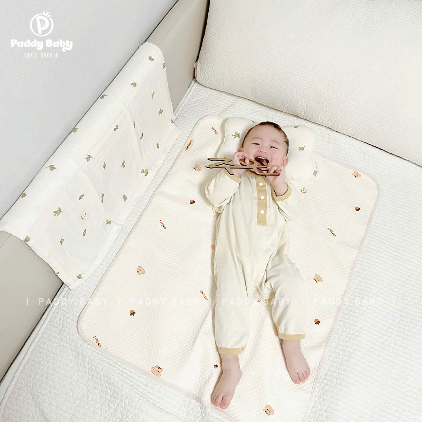 🌱 Không cần đóng bỉm mỗi ngày – mẹ có thể để bé nằm ngủ thoáng mát mà vẫn sạch sẽ, khô ráo nhờ lớp chống thấm hiệu quả.