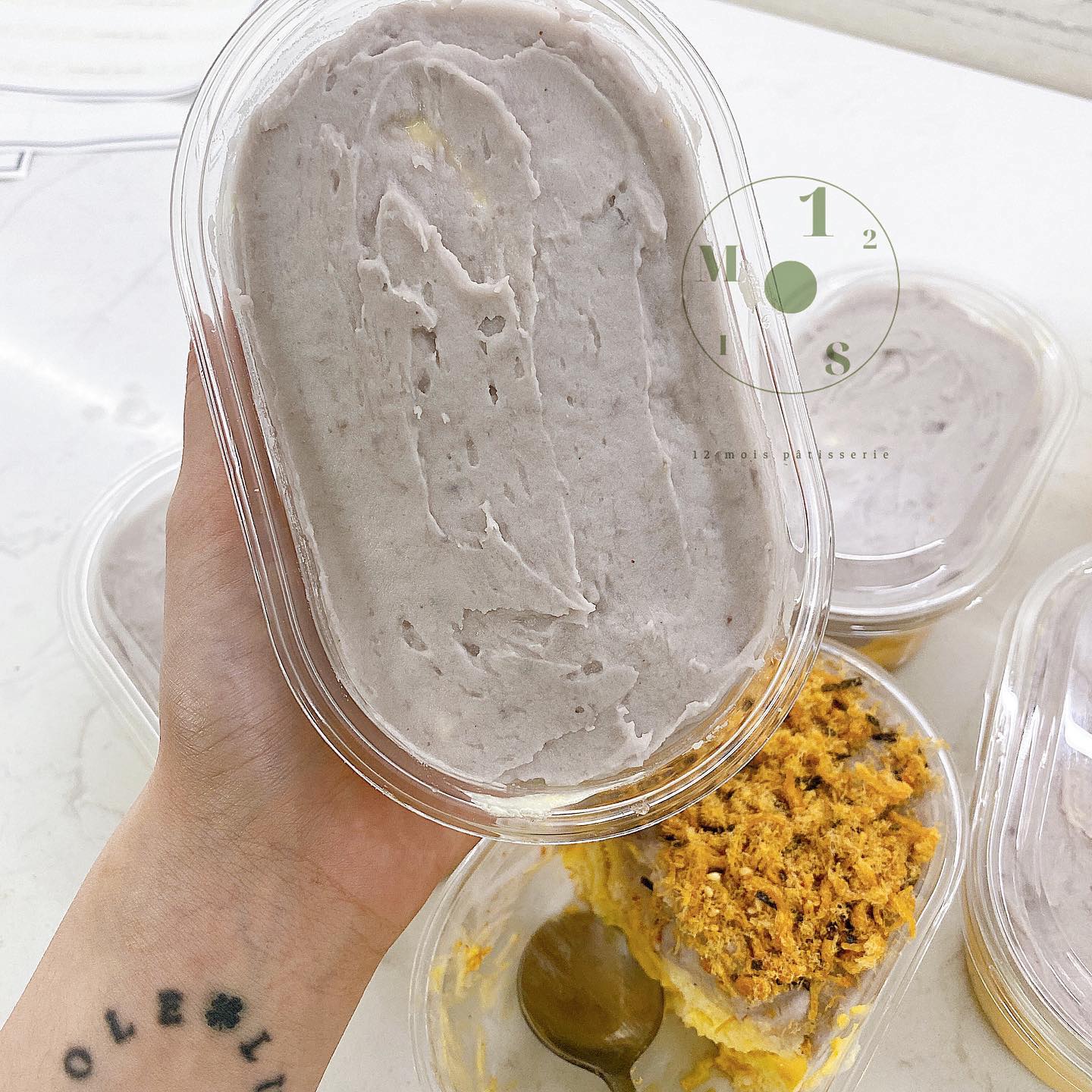 Bánh vừa thơm béo của kim sa, lại vừa thơm bùi đặc trưng của khoai môn. Kem khoai làm từ khoai môn tươi ra đc thành phẩm màu tím quá yêu 😆💜 Phủ trên 1 lớp ruốc gà giòn rong biển