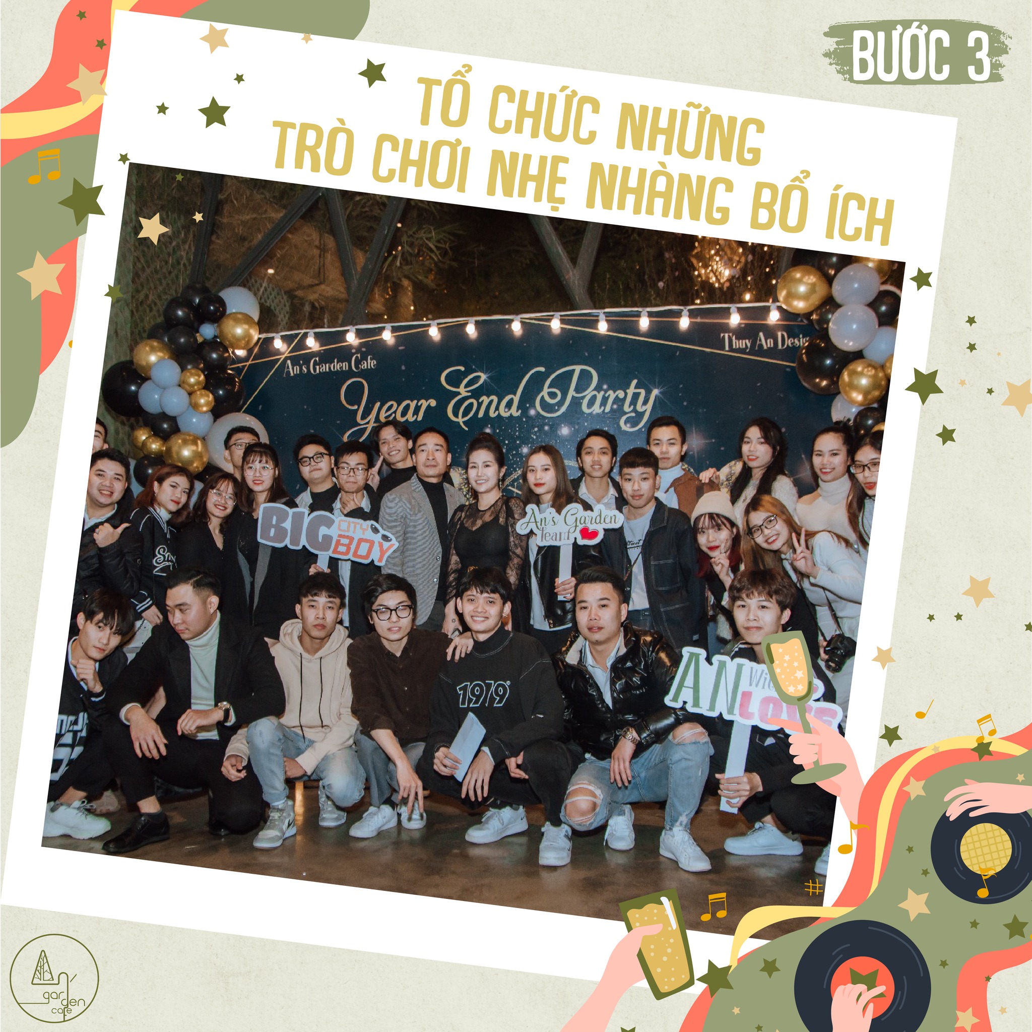 Tiệc cuối năm không chỉ là dịp để ăn mừng tổng kết một năm đã qua, mà còn là cơ hội để các thành viên trong nội bộ gắn kết với nhau hơn. AN’ Garden Cafe bật mí cho bạn bí quyết xây dựng một buổi Year End Party hoành tráng và đáng nhớ dưới đây: