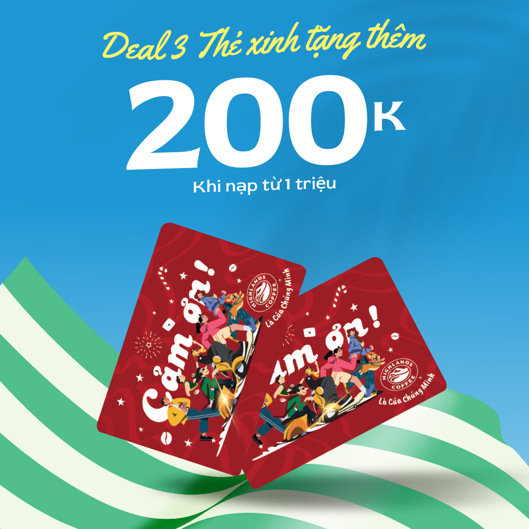 ⚡Tặng ngay 200k giá trị nạp cho Thẻ Highlands Coffee,