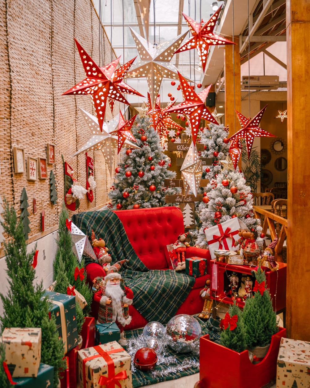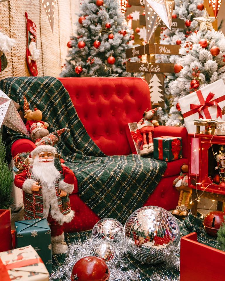Năm nay chúng ta sẽ cùng nhau ghi lại những kỷ niệm thật đẹp bên chiếc Phòng khách Giáng sinh ấm cúng nhưng không kém phần lung linh tại nhà Khóm nè. Bạn đến chơi nhà hãy bắt trọn những khoảnh khắc nhỏ và đáng yêu tại đây nha, vì mỗi chi tiết trong căn phòng này đều được tụi mình chăm chút và chọn lựa kỹ càng lắm đó, nào là quả cầu disco, nào là hộp quà xanh đỏ và cả những chú tuần lộc nhỏ xinh, tất cả đều đang chờ bạn ghé Khóm để trải nghiệm nè 😊