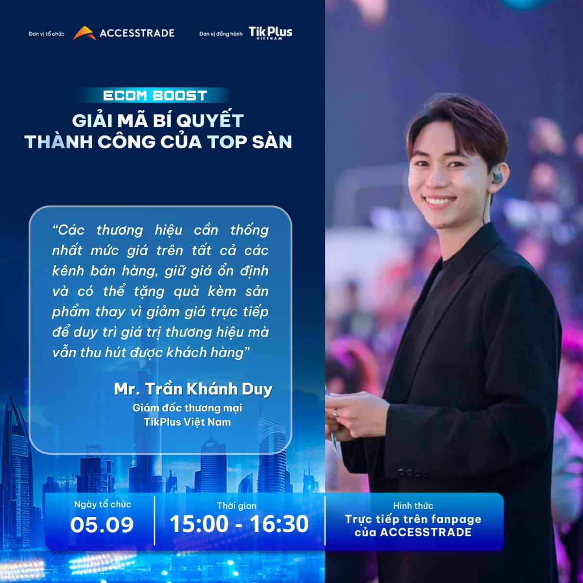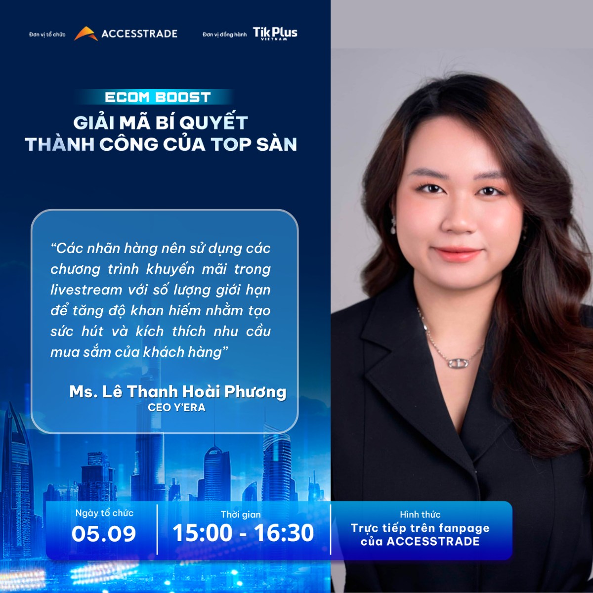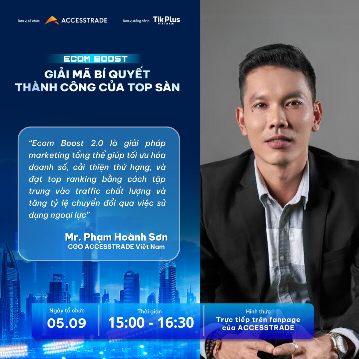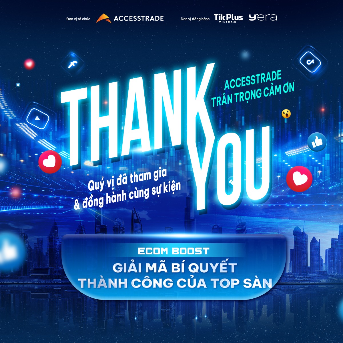 ⏰ Vào lúc 15:00 ngày 05/09, sự kiện webinar “Ecom Boost – Giải mã bí quyết thành công top sàn” đã diễn ra trực tiếp trên các trang mạng xã hội của ACCESSTRADE và nhận được sự quan tâm đông đảo của khán giả. Chúng tôi rất vinh dự được chia sẻ những kiến thức bổ ích từ các chuyên gia hàng đầu.