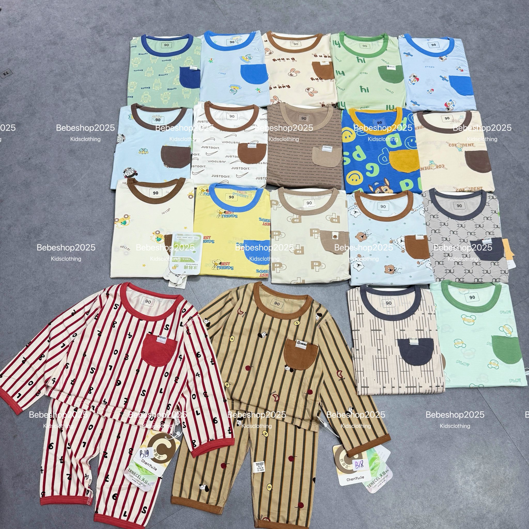 ![[🆕🇻🇳] Bebé Shop – Quần áo trẻ em 🧑🧒❤️️👶⭐️ Tay dài quần dài thun lạnh tencel cho bé 9-23kg trai gái full size @fan cứng