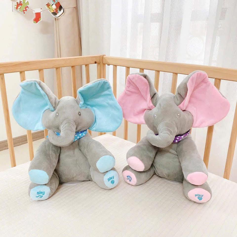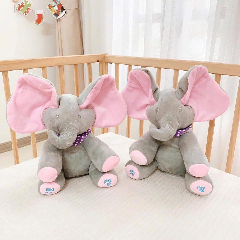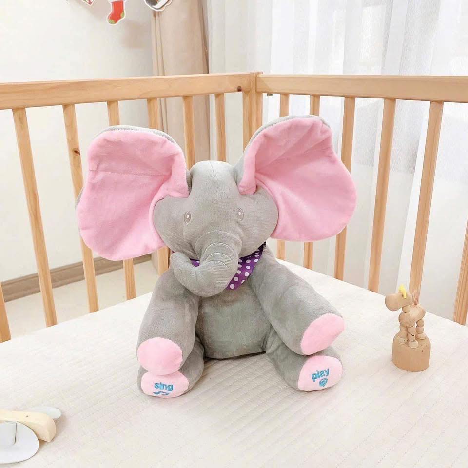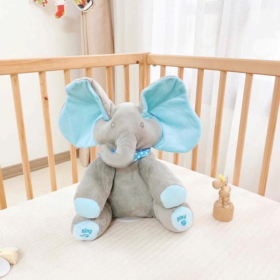Đồ Chơi Thú Bông Voi Con Dễ Thương Trốn Tìm Ú Òa Vẫy Tai, Biết Hát Đẹp Bền Cho Bé