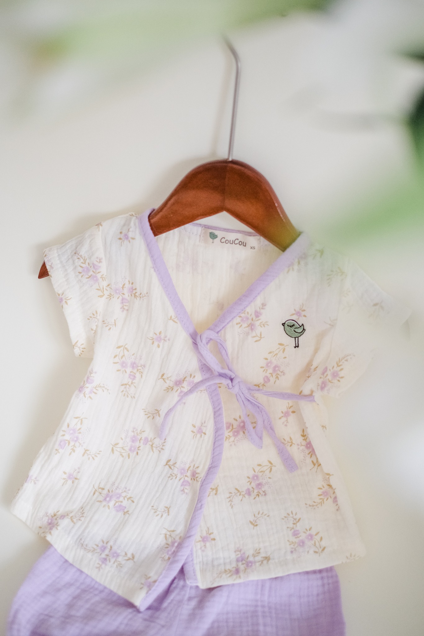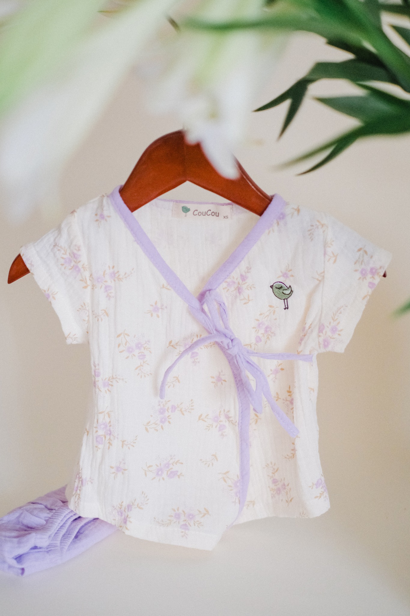 Mẹ chọn cho bé một bộ đồ nhẹ nhàng – như làn gió mơn man trên cánh đồng hoa tím.