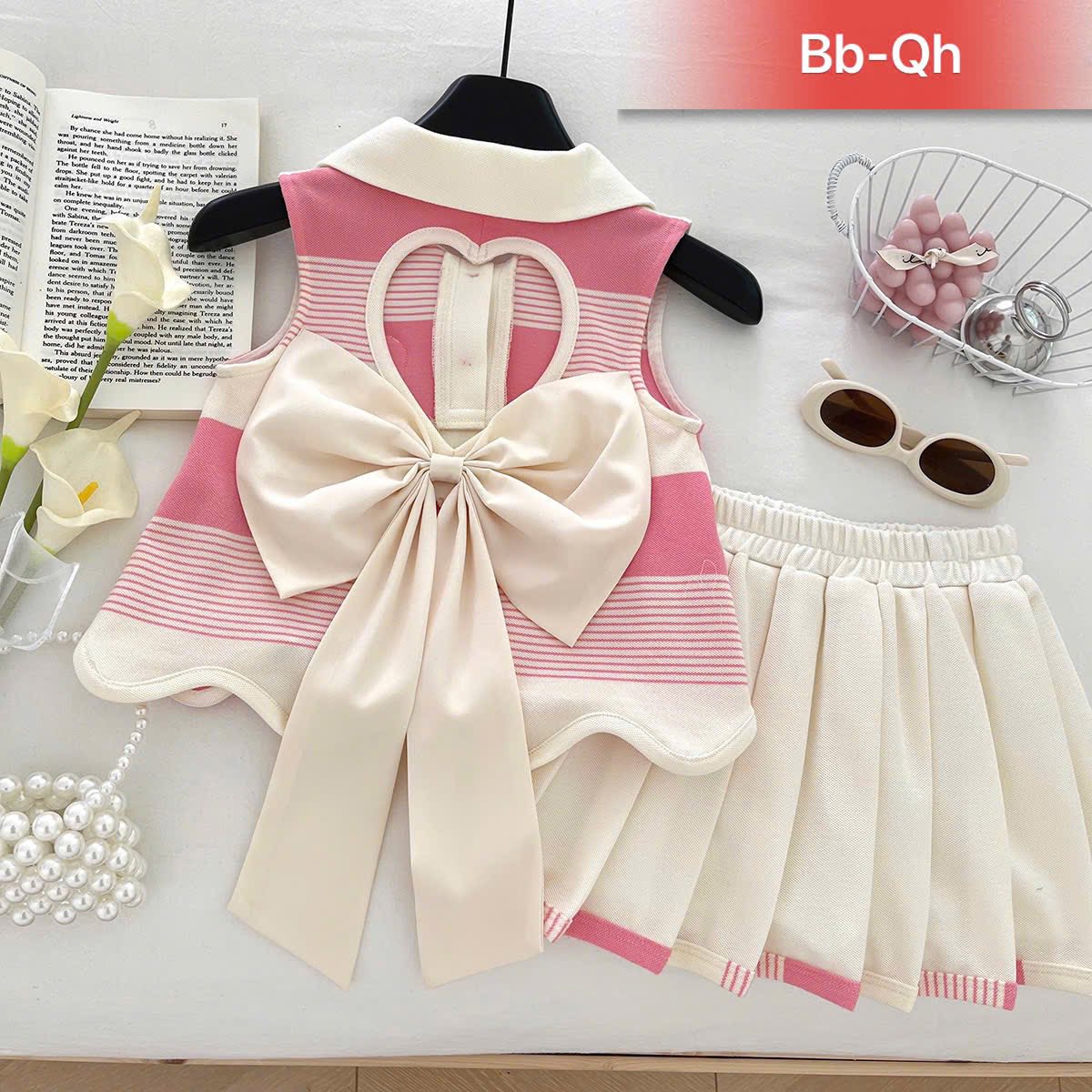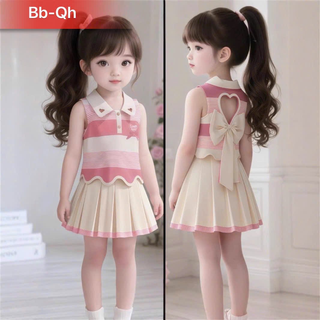—Nguyên bộ chất vải thun coton nhập quảng châu mềm mại thoáng mát . Thấm mồ hôi ,hình in sắc nét bao đẹp. Phối nơ phía sau tạo điểm nhấn