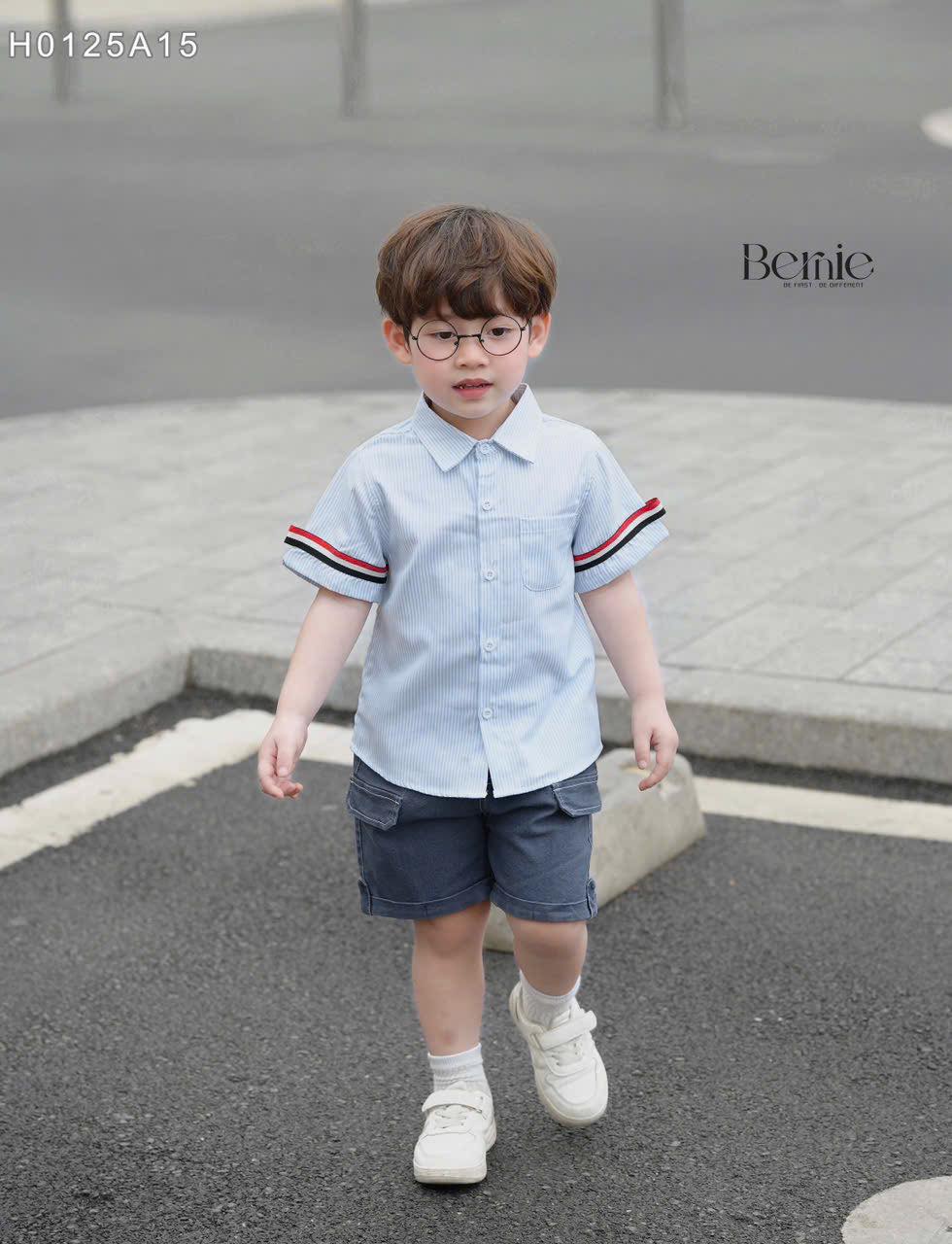 Sơ mi trắng cộc viền tay cho bé size 80-130 (9-23kg)
