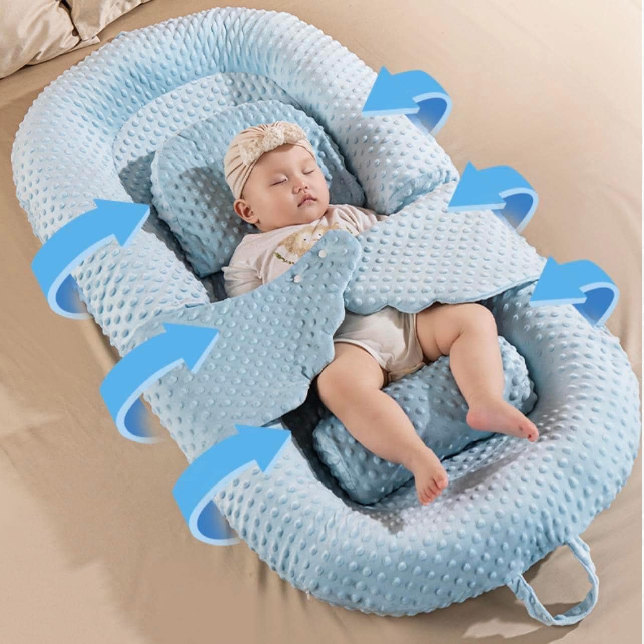 – Chiếc nôi xinh đẹp này vừa là nôi nằm vừa kiêm luôn gối chống trào với độ dốc 15 độ nằm xuyên đêm ngủ ngon ko lo bụng dạ ậm ạch. Với bé sơ sinh còn non nớt mẹ hay dùng kèm theo gối chống lõm hãng tặng để cho con một khuôn đầu tròn nhé.