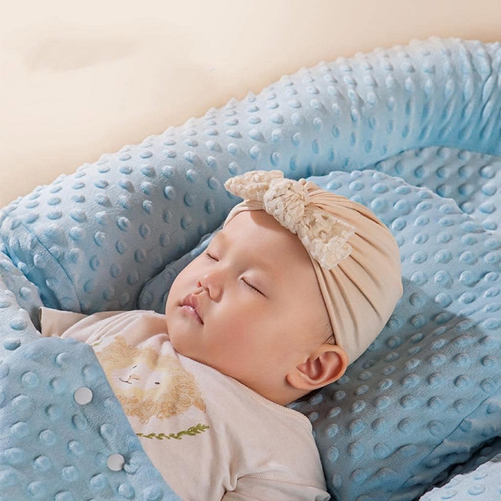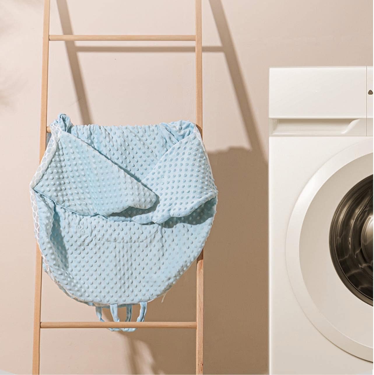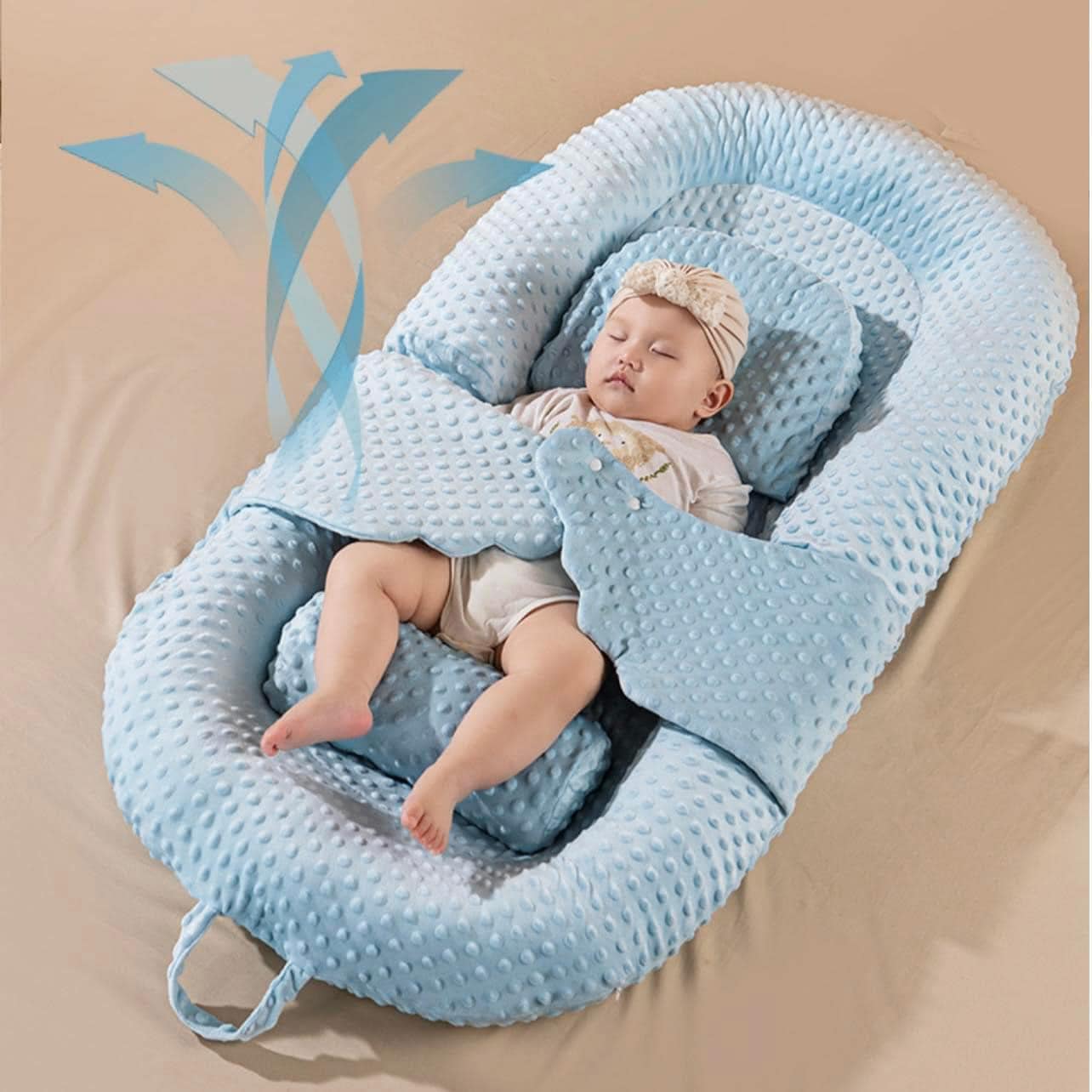 – Nôi được làm bằng chất liệu một mặt vải côtton mềm mát với những hạt nhung mô phỏng làn da mẹ khiến bé cảm thấy thân thiện hơn. Mặt sau là lớp 3D marks thoáng khí