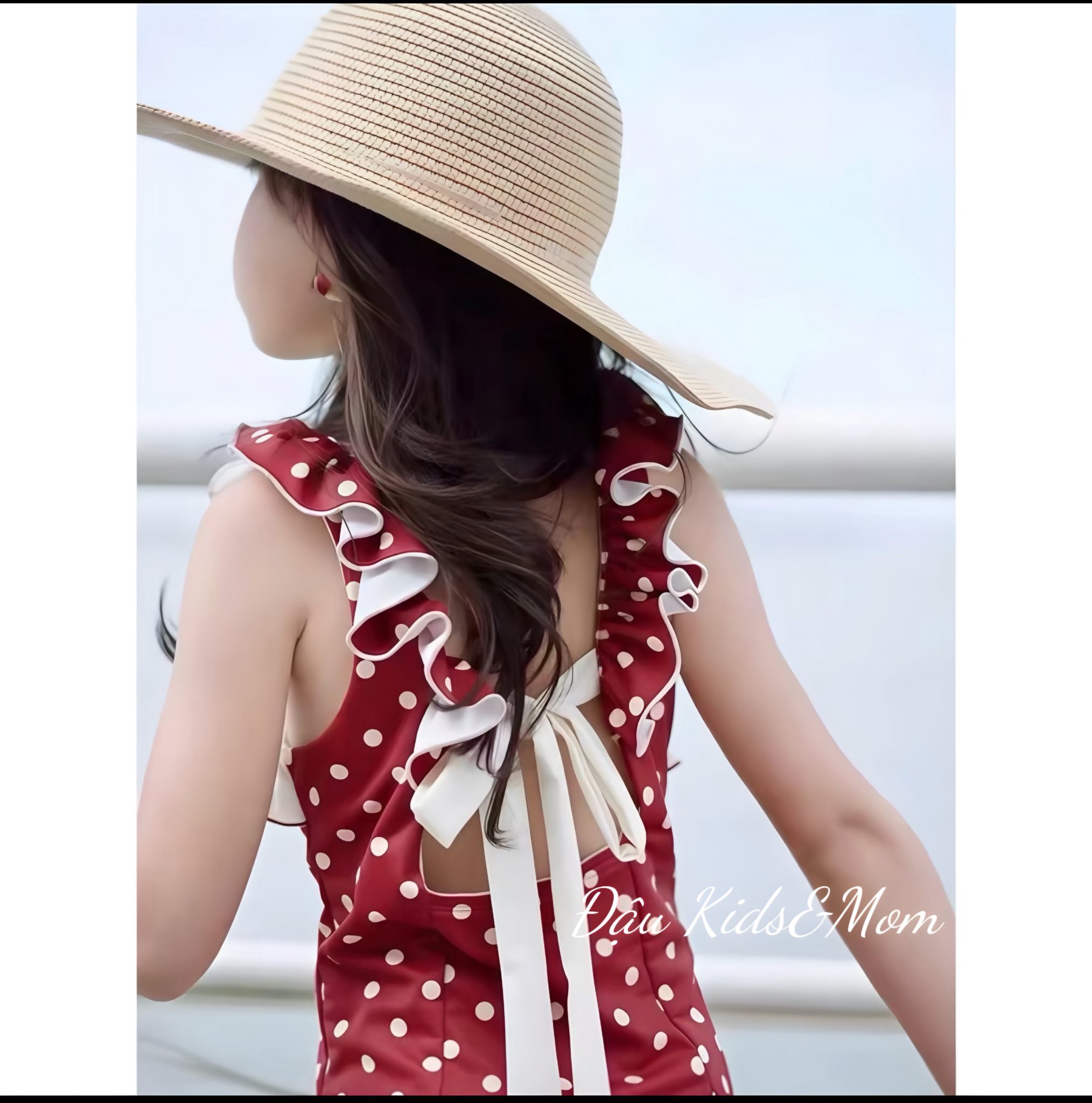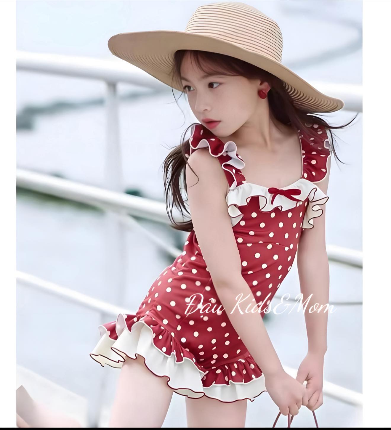 👗 Đỏ chấm bi cổ điển – bé như nàng thơ nhỏ dạo biển Châu Âu