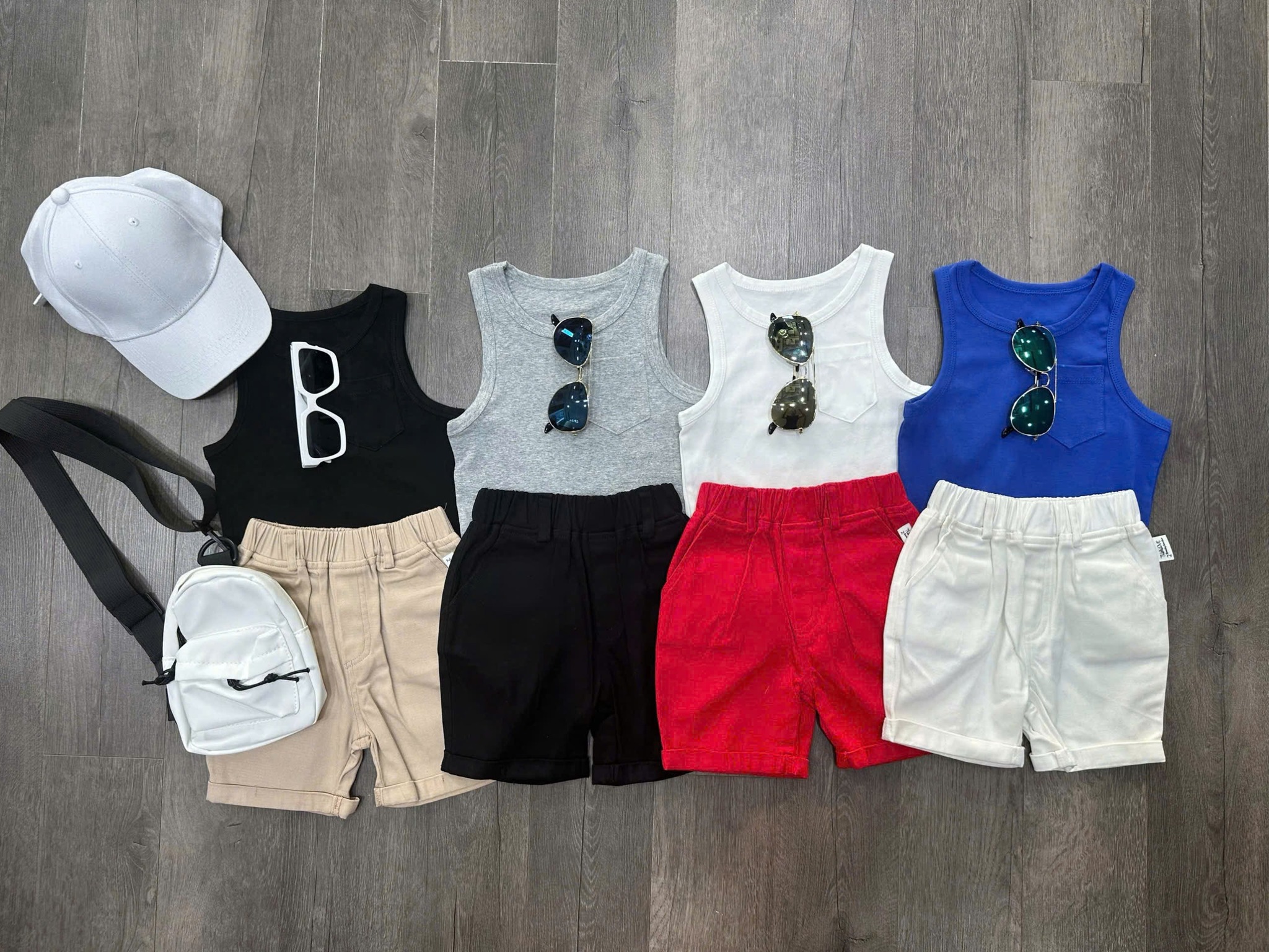 ✔️Tổng hợp các sét áo ba lỗ mix quần sooc kaki cho bé trai