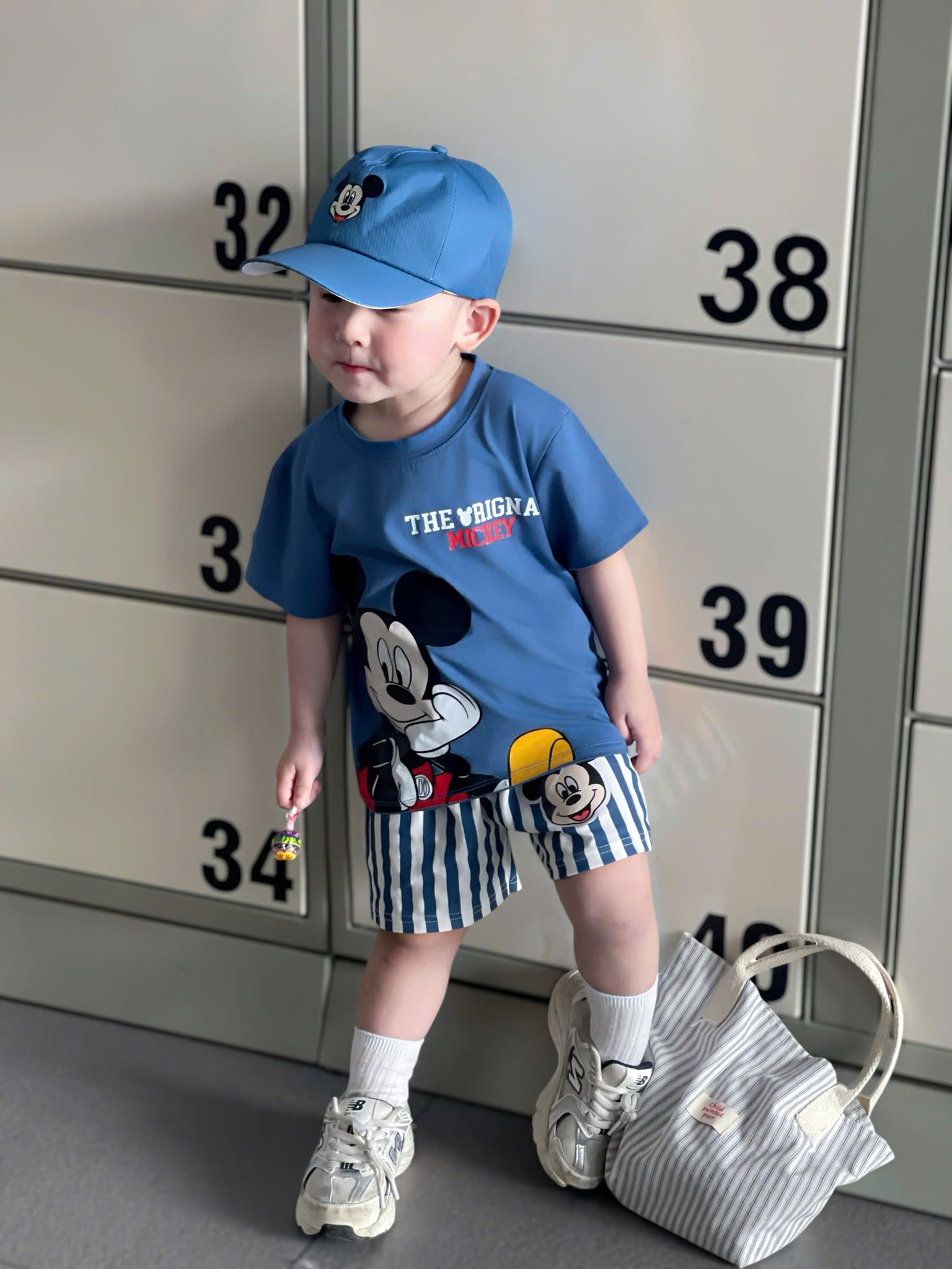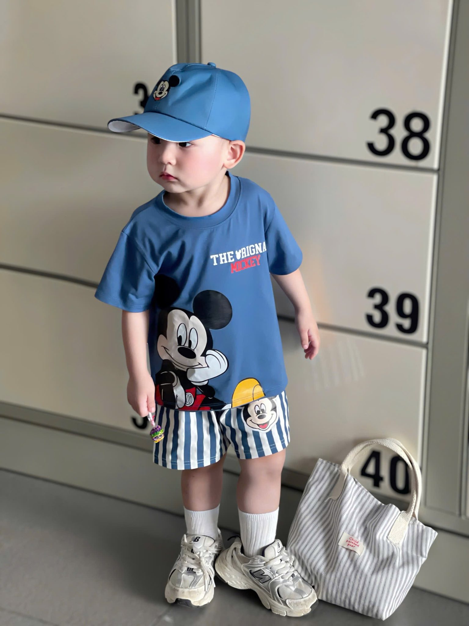 Micky xanh,quần sọc kẻ sáng sủa