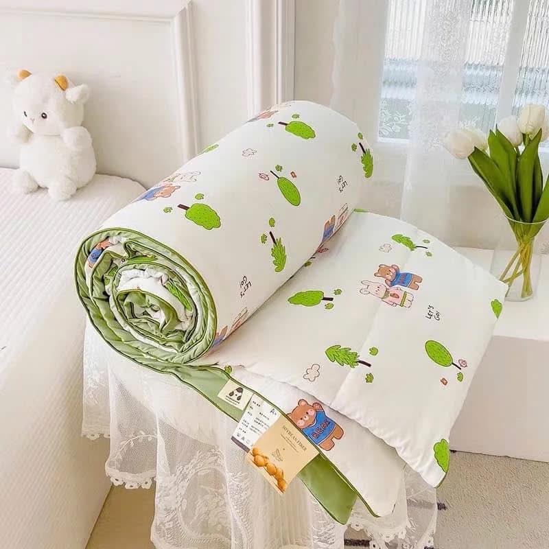 Chăn sơ đũi đậu nành 2 lớp có Trần bông nhẹ. 2m*2m3 chứ ko phải hàng 1m8 đâu ạ.