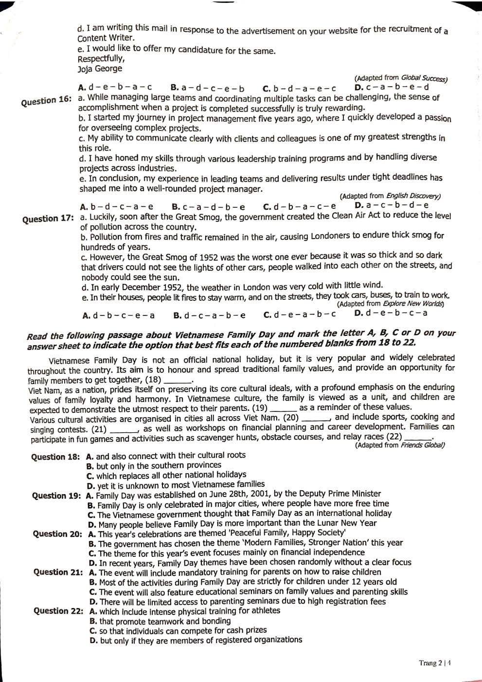 Đáp án SAM để dưới comment, làm xong rồi mới tham khảo đó nha!