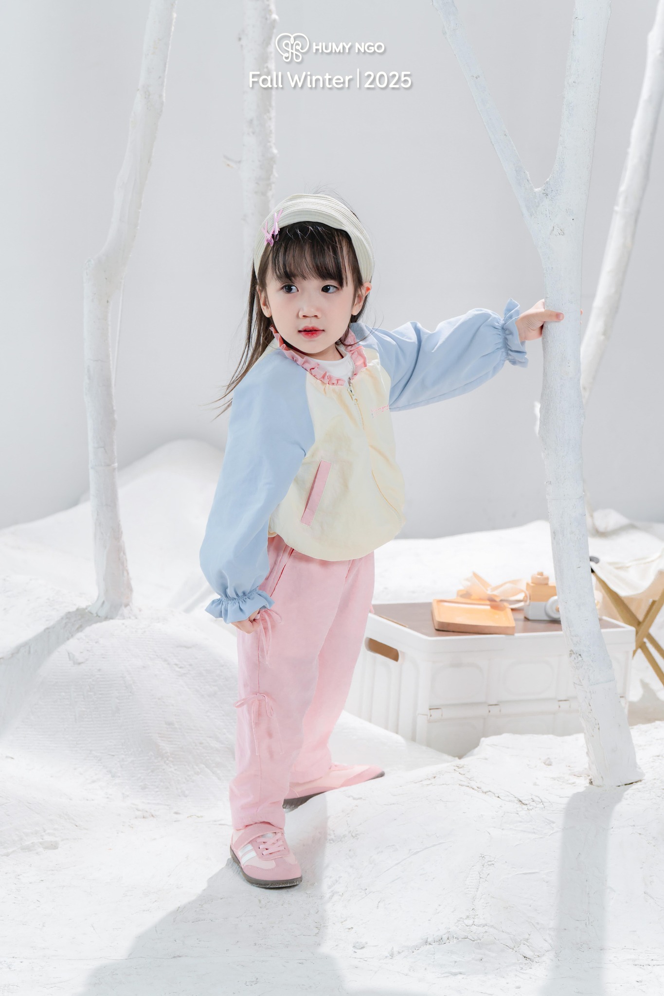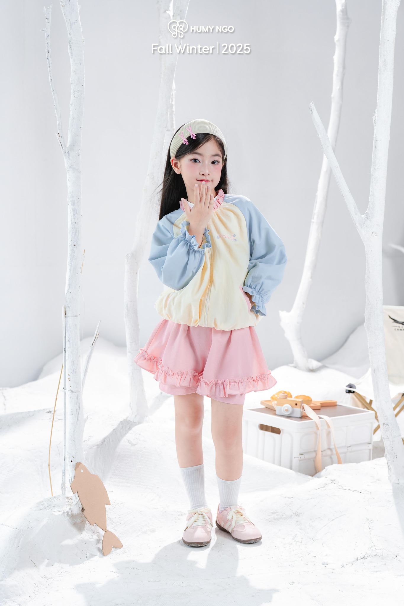 • Phối màu pastel vàng kem – xanh baby, điểm xuyết cổ bèo hồng nhẹ đọc quyền thiết kế Humy Ngo.