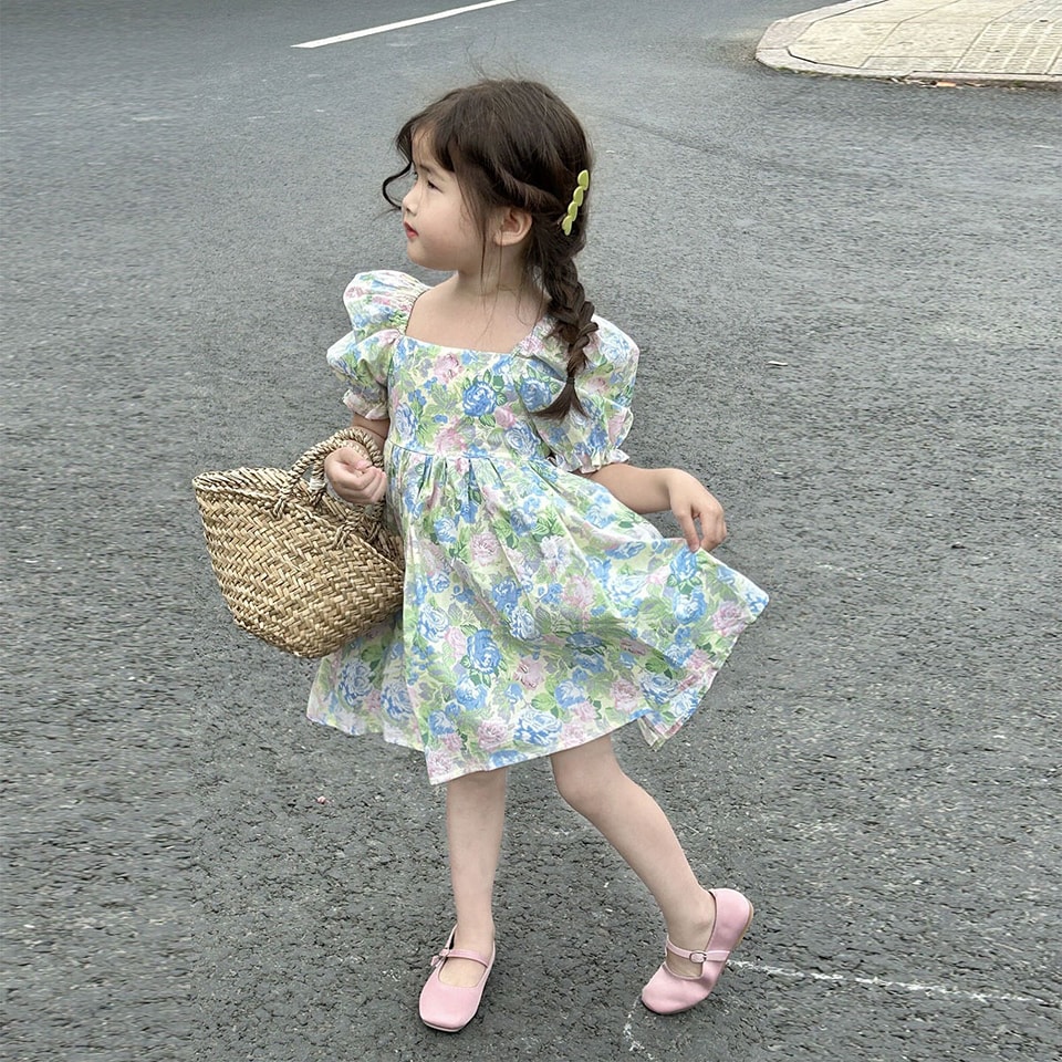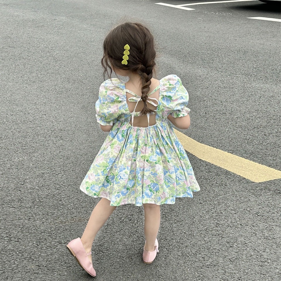 🍃🍃 Một chiếc váy thô hoa thiết kế dáng xoè tay bồng – điểm nhấn tạo lên sự nổi bật hở lưng thắt nơ đường may giữa siêu chảnh❤️