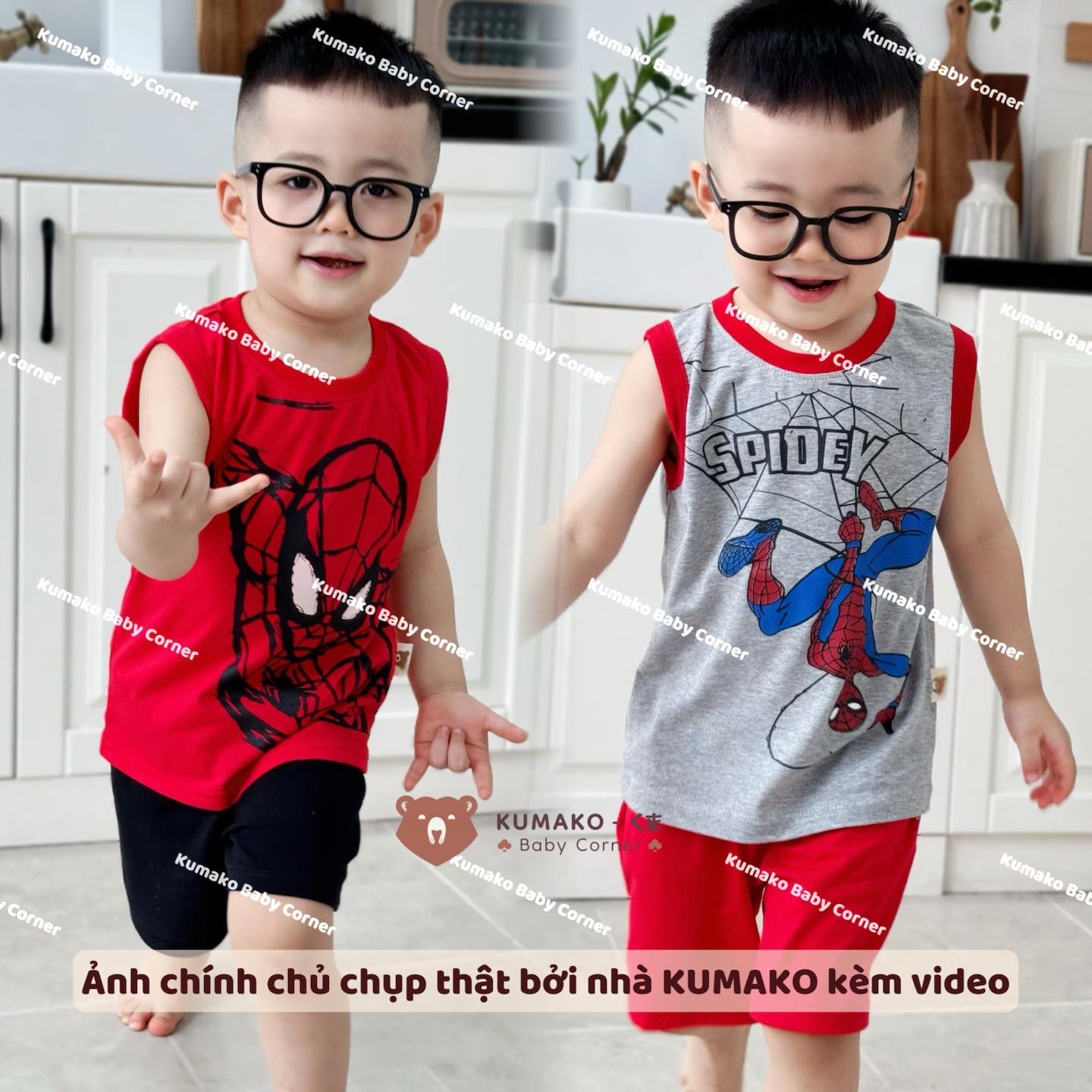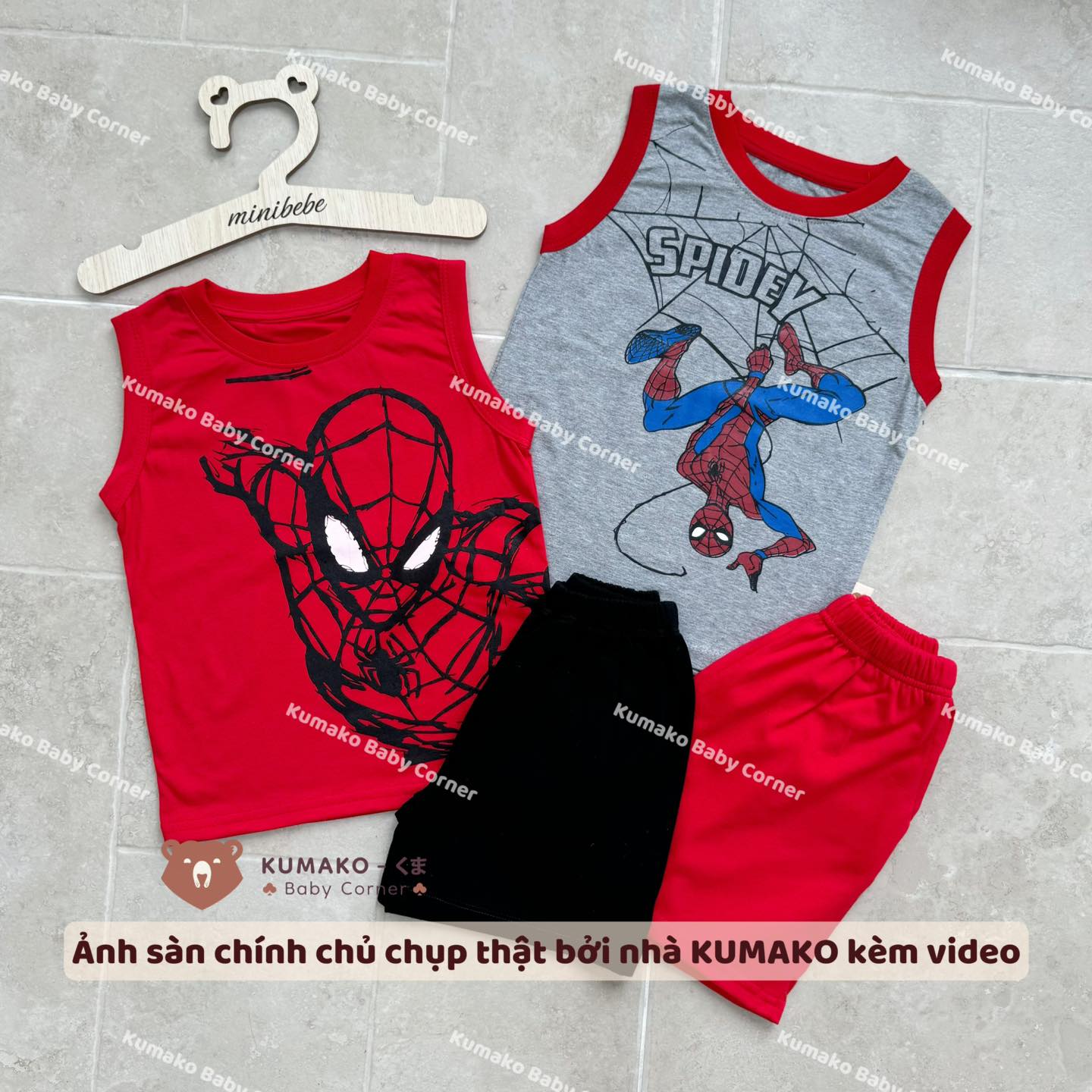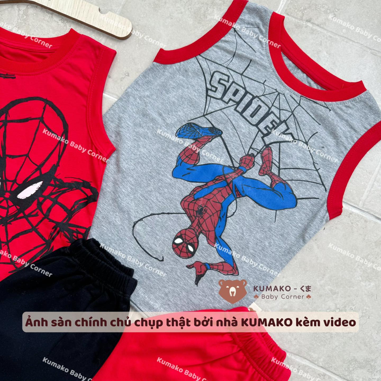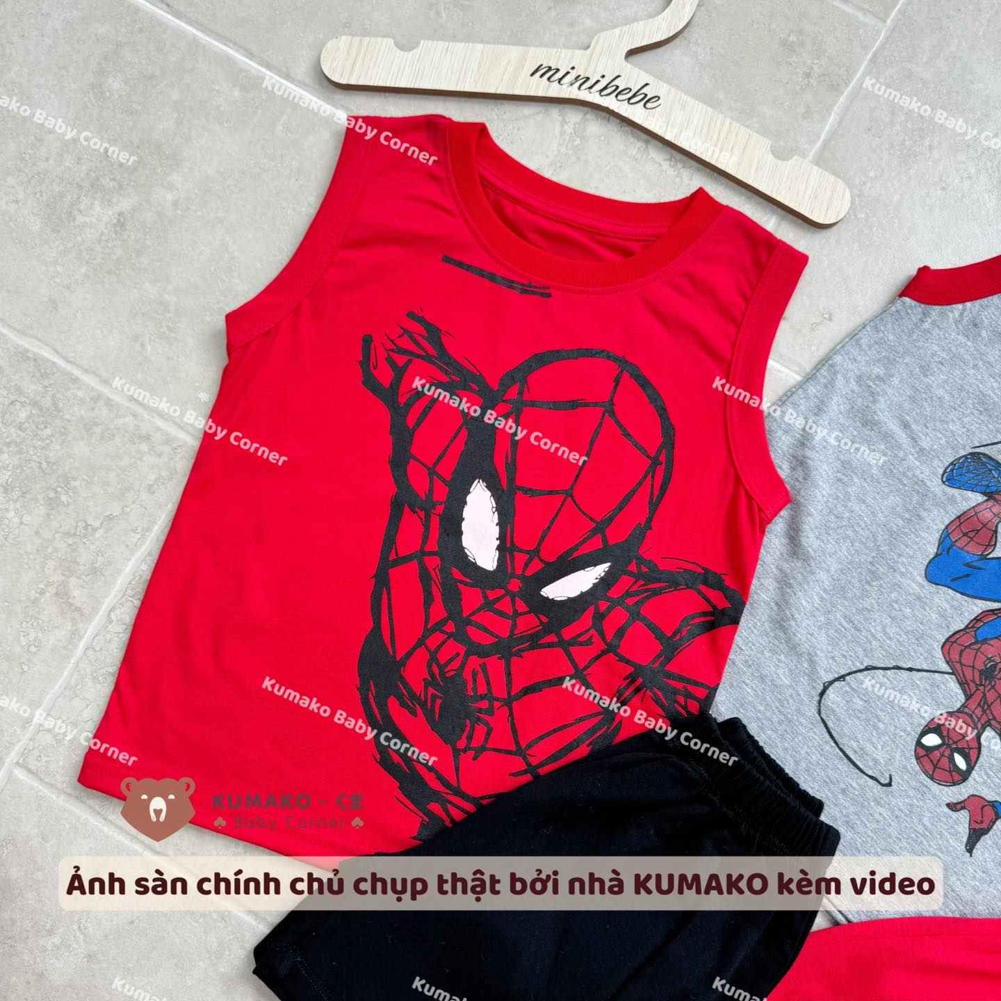 ![[🆕🇻🇳] Kumako Baby Corner 🧑🧒❤️️👶⭐️ Lên liền sét ba lỗ mát mẻ cho các e bé iuSét 2 Bộ Thun Cotton 3 lỗ Sát Nách Người Nhện Đỏ Xám Spiderman Siêu Nhân Marvel