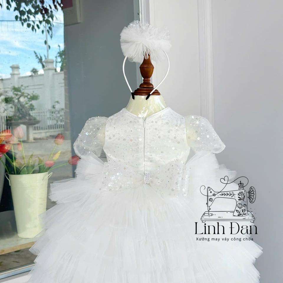 Váy công chúa màu trắng cho bé là một trang phục tuyệt đẹp, mang đến sự thanh thoát và dễ thương cho các bé gái. Những chiếc váy này thường được thiết kế với các chi tiết nhẹ nhàng và sang trọng, thường là vải voan, ren, satin hoặc lụa, tạo nên sự mềm mại và bay bổng.