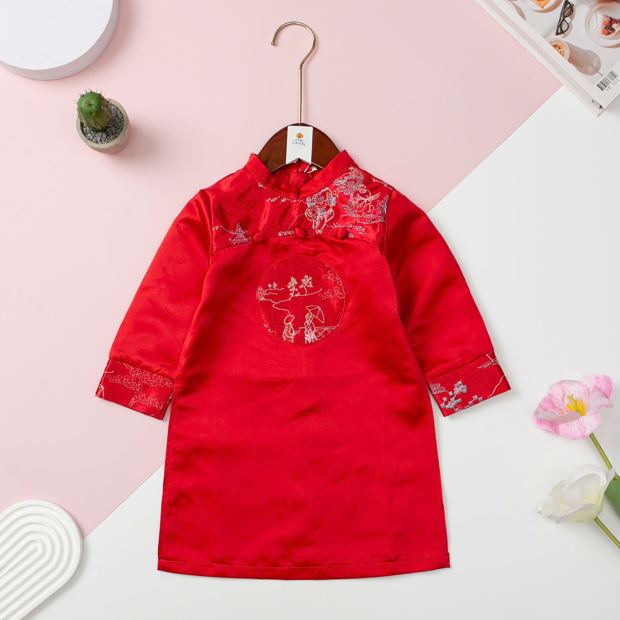 🌟 Thiết kế: Form dáng chuẩn đẹp, cổ trụ truyền thống, tay dài lịch lãm. Điểm nhấn là hoạ tiết thêu tròn giữa ngực tinh xảo, mang phong cách cổ điển pha lẫn nét hiện đại.