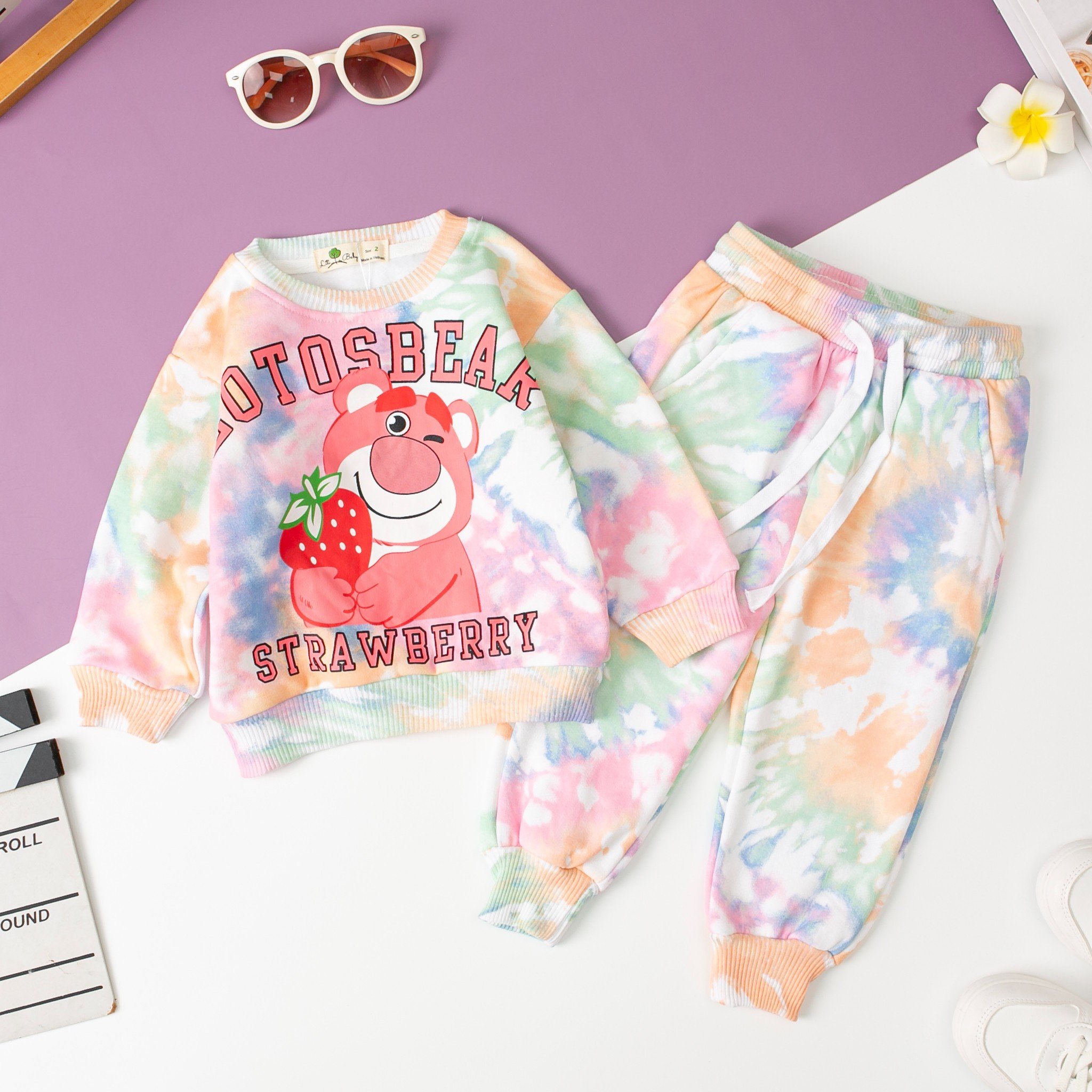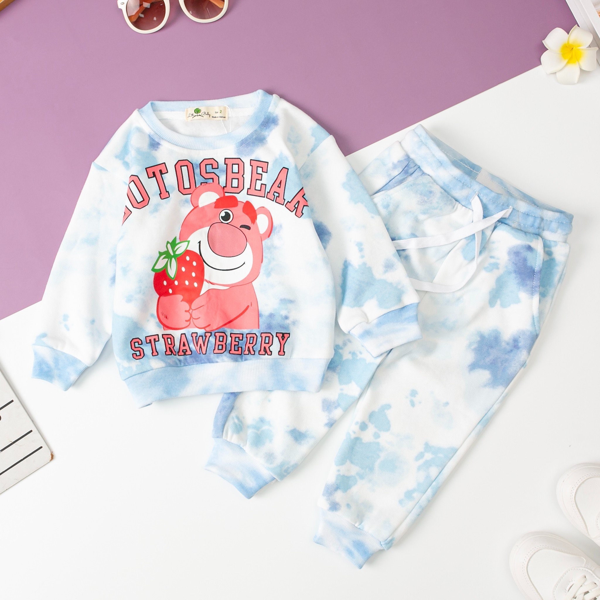 Phong cách: Bộ bé gái nỉ bông vải loang thường có các họa tiết và hoạt họa ngộ nghĩnh như hoa, hình vẽ, hoặc hình ảnh các nhân vật yêu thích của bé.