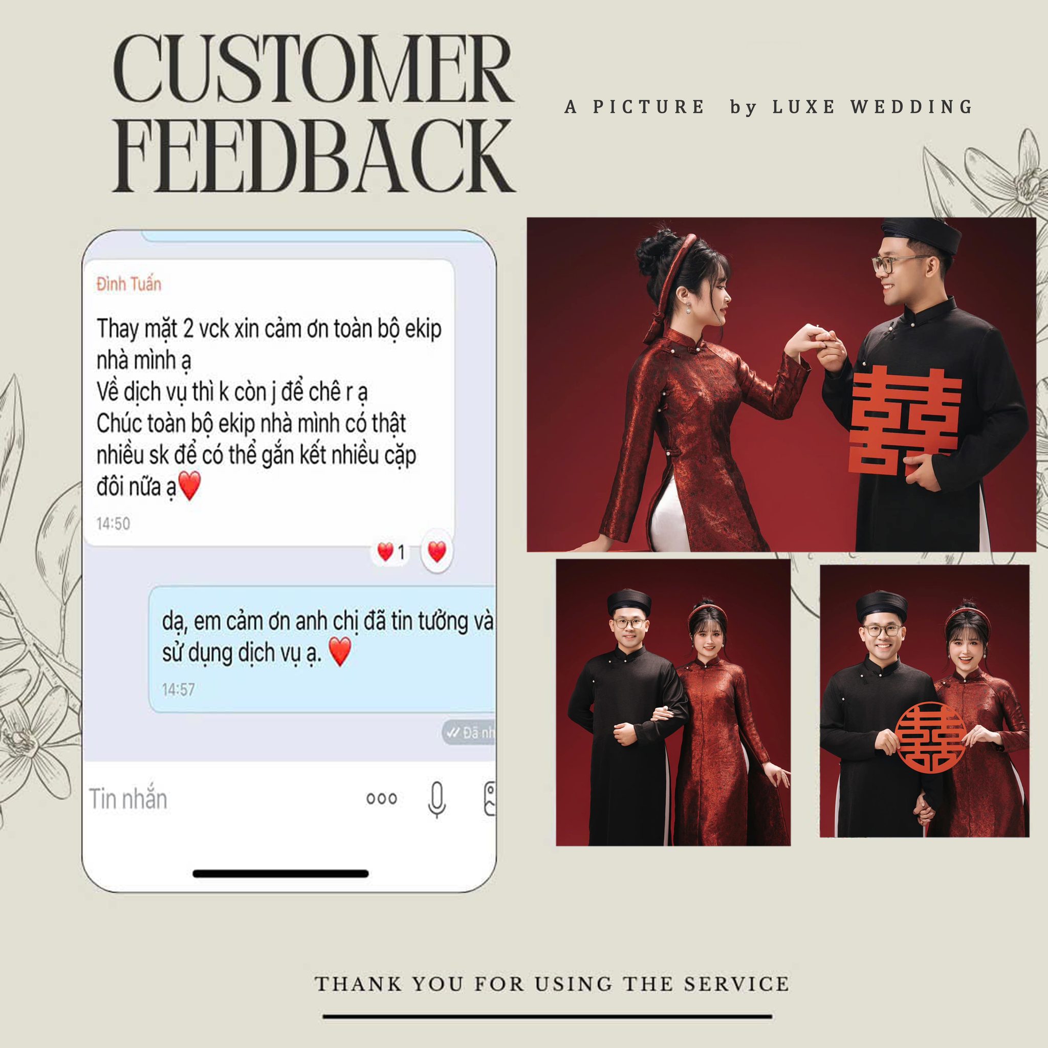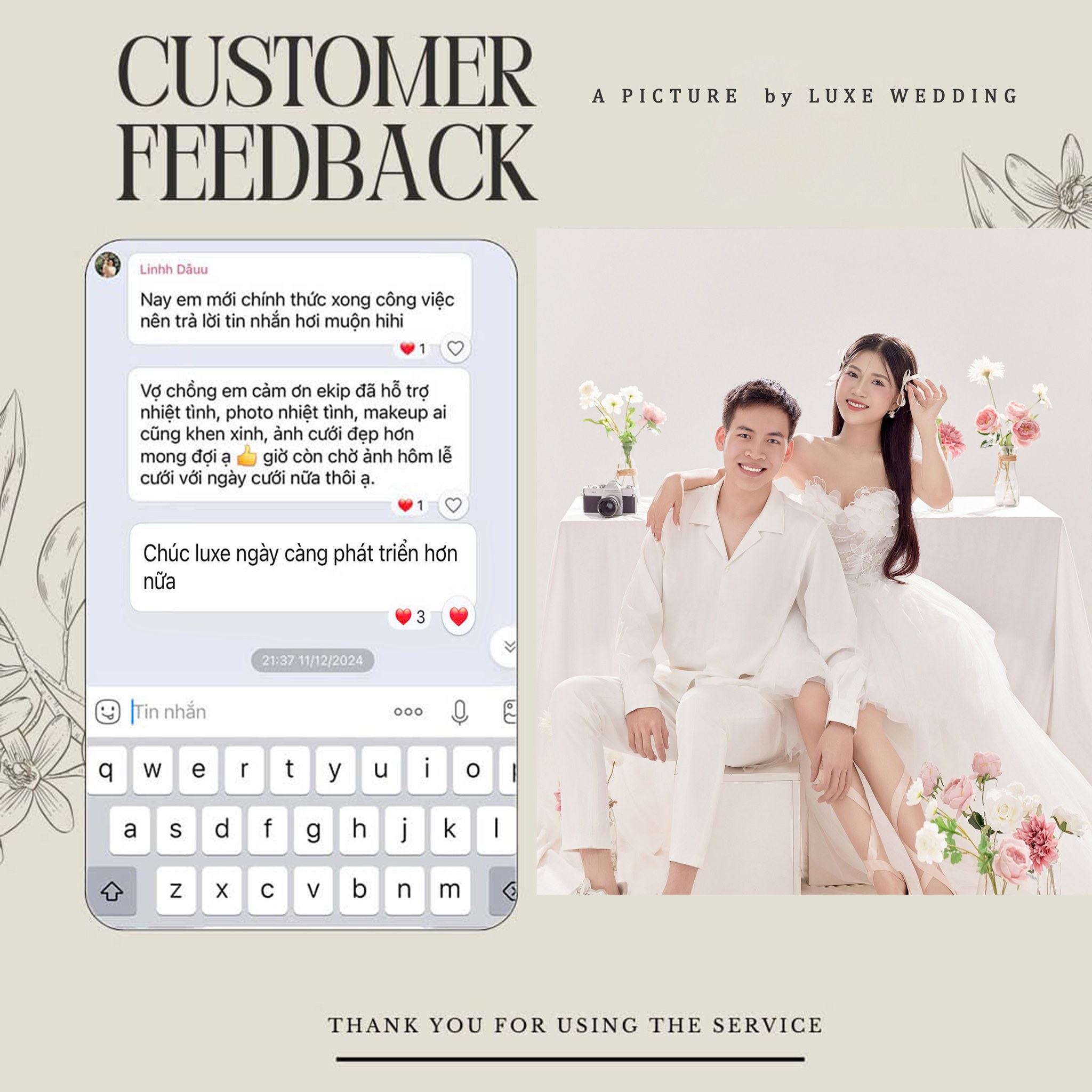 Sau 1 ngày hết mình với công việc, điều tuyệt vời nhất ấy là nhận được những lời khen ngợi chân thành và cảm nhận được sự hài lòng của các dâu rể đã đến với Luxe Wedding 🥰🥰