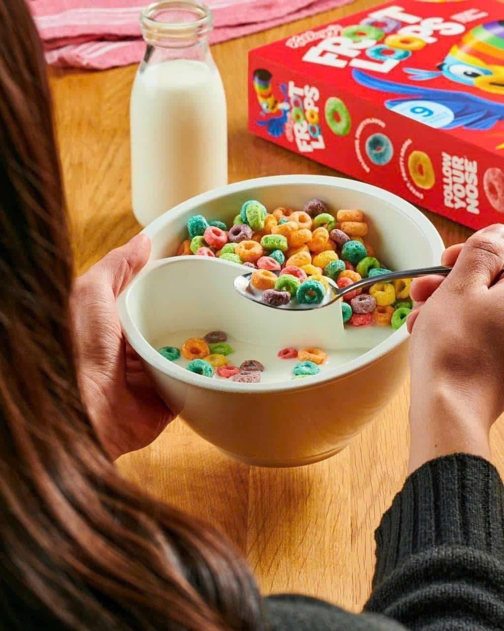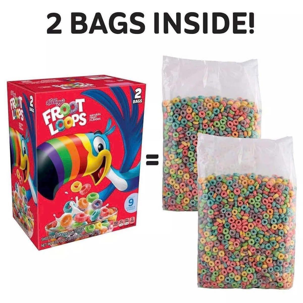 🍇🍇Với mong muốn có thể cung cấp cho bé một bữa ăn sáng đơn giản, nhanh gọn, cung cấp đầy đủ chất dinh dưỡng và năng lượng, Kellogg’s (một hãng sản xuất ngũ cốc và bánh ăn sáng nổi tiếng tại Mỹ) đã cho ra đời một loại ngũ cốc ăn sáng được rất nhiều người yêu thích – Froot Loops vị hoa quả.