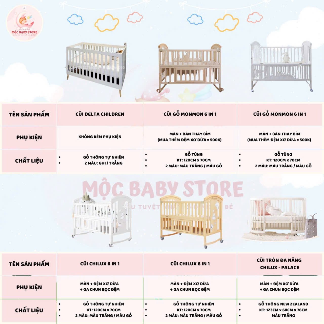 🌙 Điểm danh những dòng cũi có tại Mộc baby một số mẫu Mộc đặt hàng 2 ngày có liền nha 🫶🏻