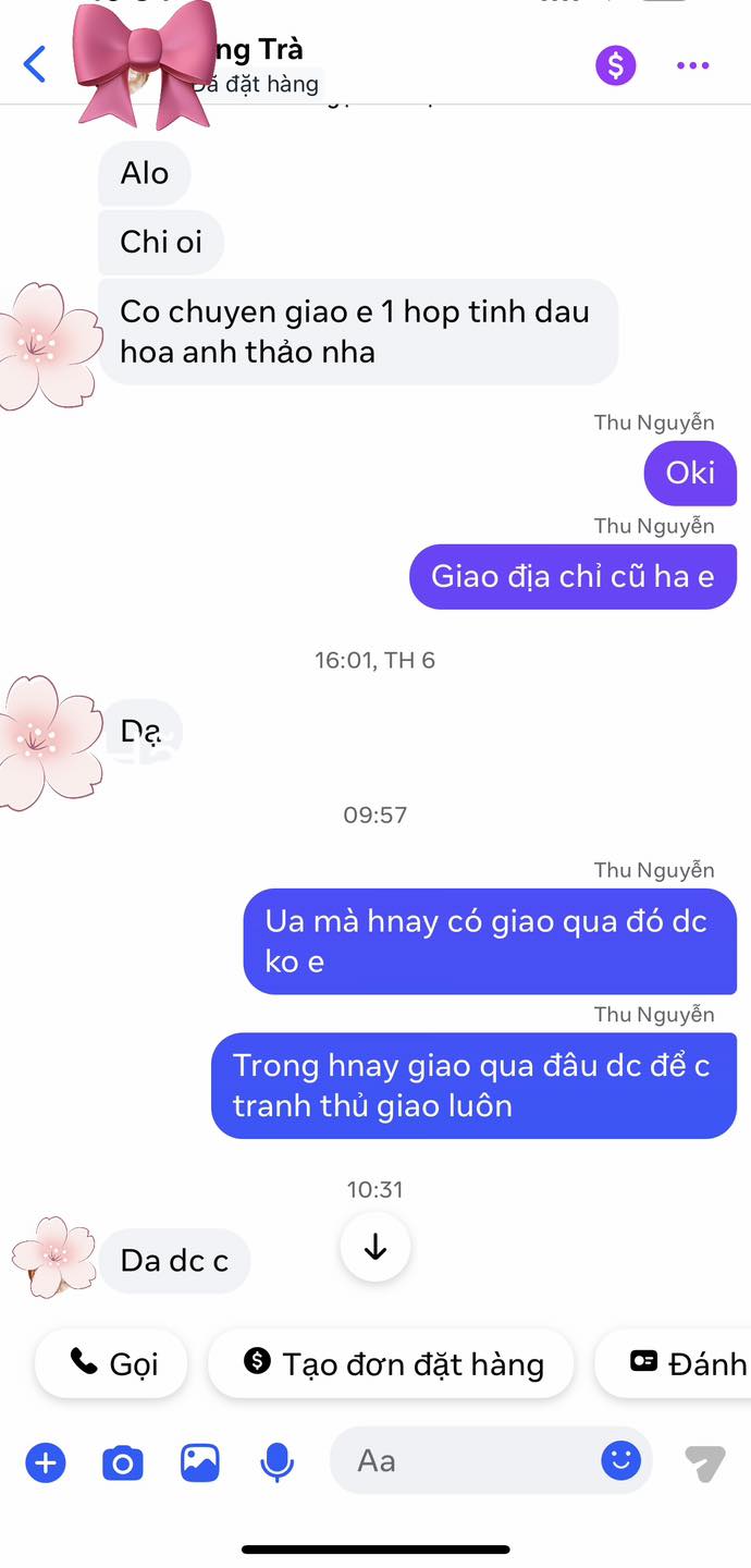 Khách quen đặt “tinh dầu hoa anh thảo” nên tranh thủ ship liền!