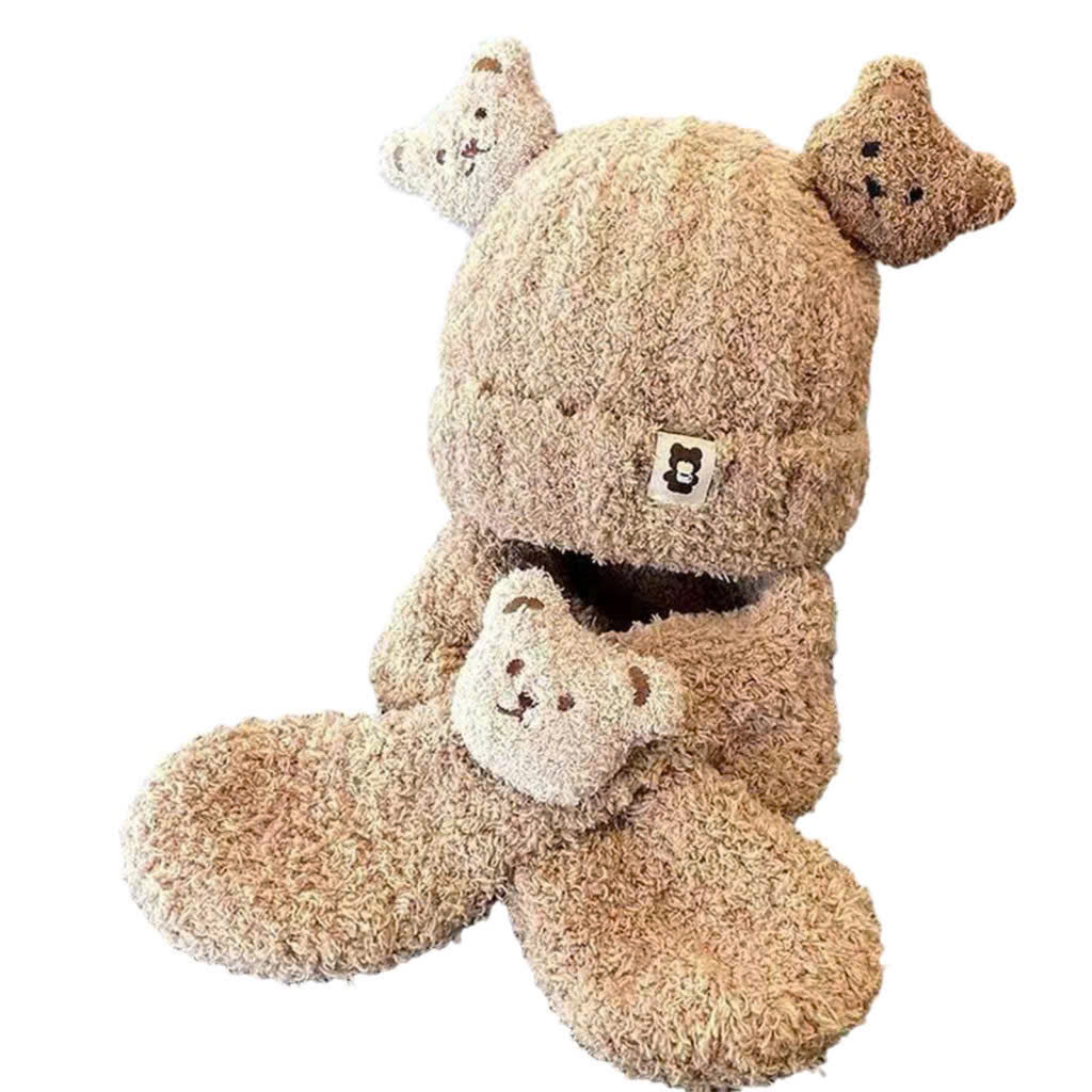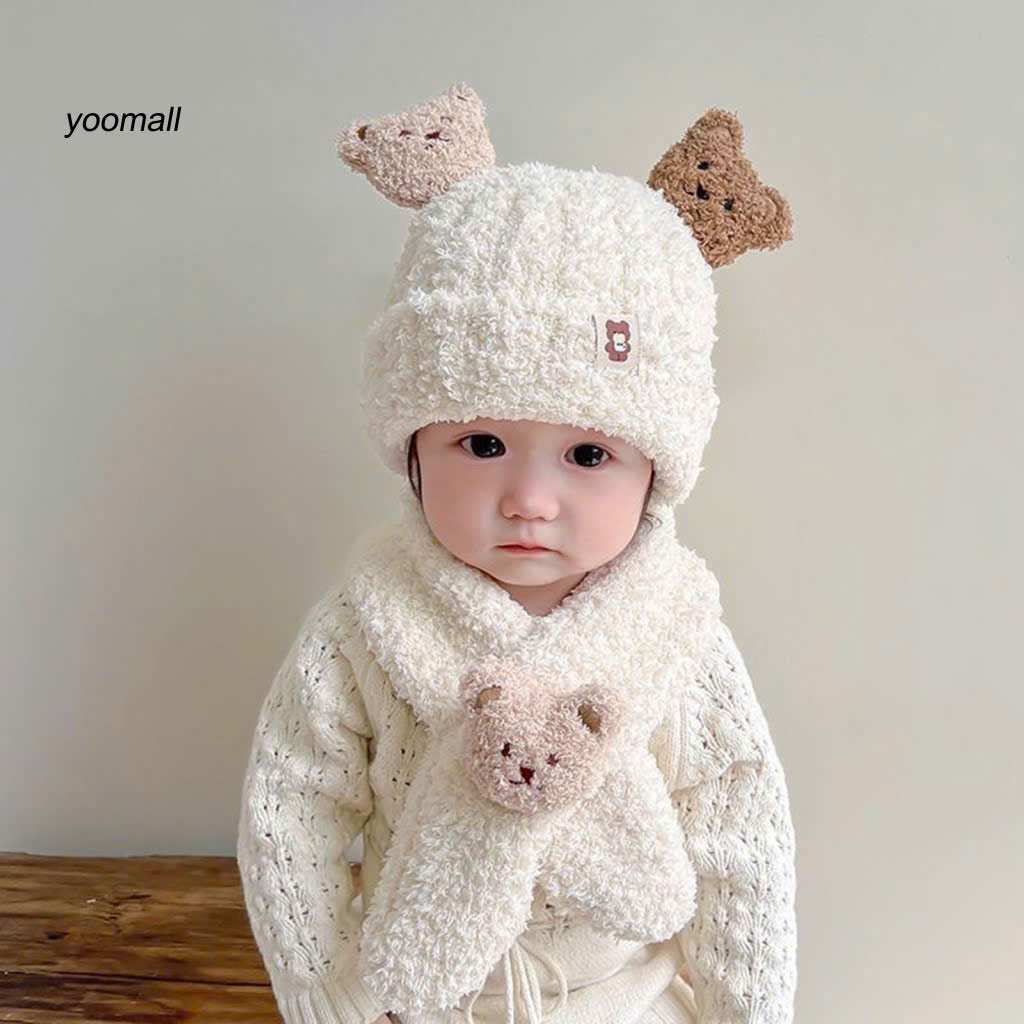 Mũ Len Gấu 3D Lông Cừu + Kèm Khăn Quàng Cổ 0-3y