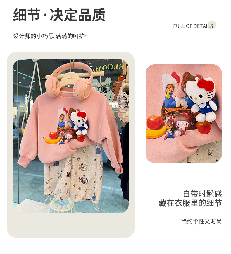 ![[🆕🇻🇳] NHI CHAN (Kid Clothings) – Chuyên quần áo bé gái Quảng Châu cao cấp 🧑🧒❤️️👶⭐️ Bộ nỉ kitty đính nổi 2 màu có sẵn, hàng QCCC