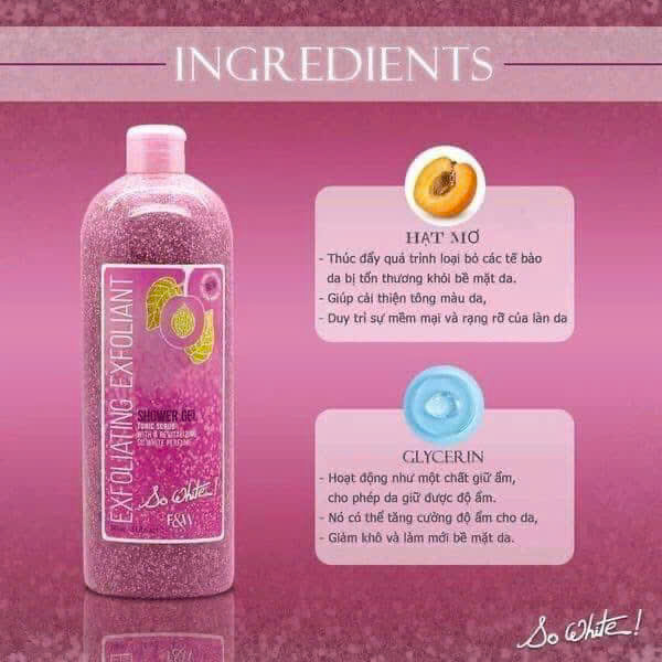 ✔️ Màu hồng (So White) : Cung cấp dinh dưỡng cho da, dưỡng trắng da, giảm mụn body Thanh lọc và làm sạch sâu