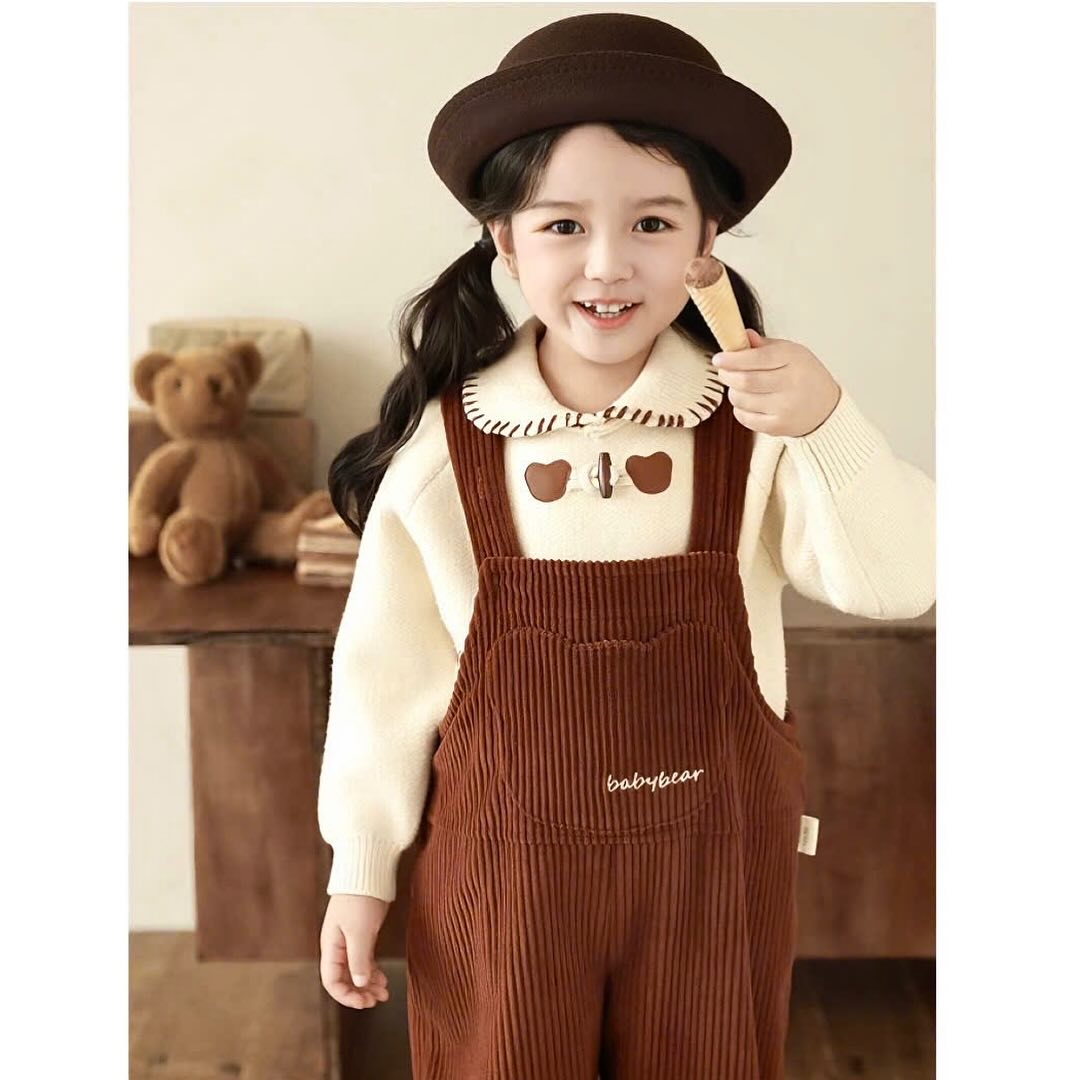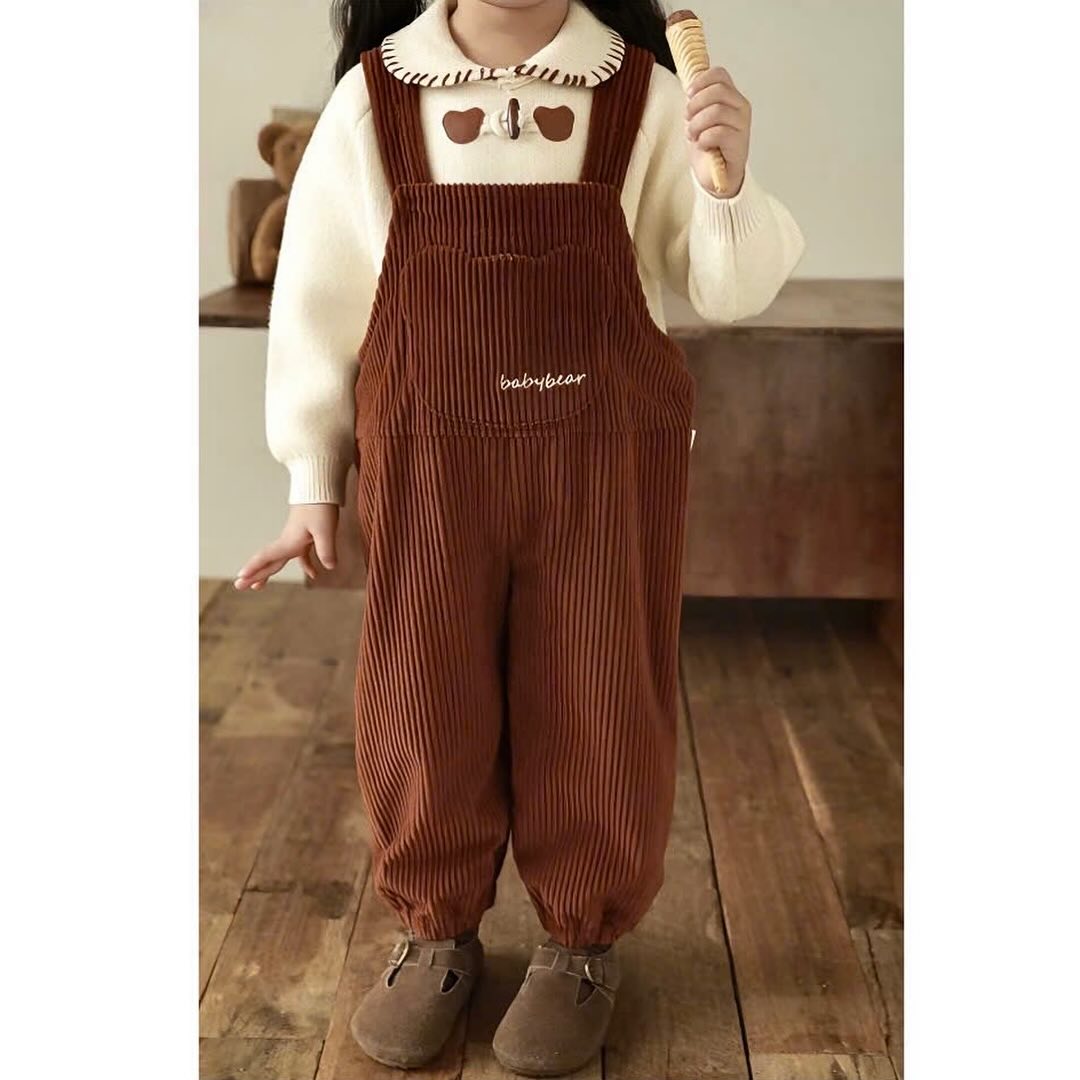 🧸Yếm nhung tăm màu nâu xinh xỉu. Bên trong lót lông ấm áp nên mặc mùa đông không sợ lạnh đâu ạ. Giá hạt dẻ #2xx chỉ còn sl ít mời các mom lên đơn nha🥰