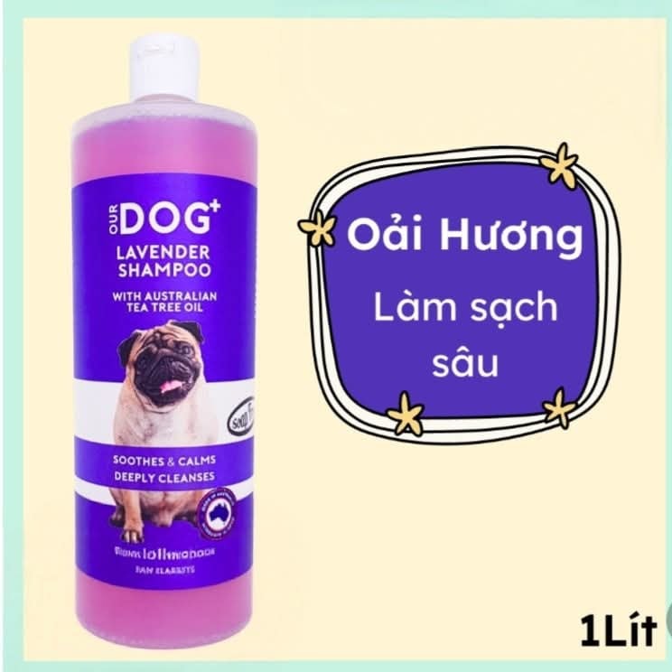 • Sữa tắm Our Dog Tím – Hương Laveder và tinh dầu Úc an toàn, bảo vệ cún sạch dài lâu. Tác dụng giữ ẩm và mang đến cảm giác thoải mái. Sữa tắm này có tính kháng khuẩn nhẹ, giúp ích cho da đang bị viêm và tổn thương.
