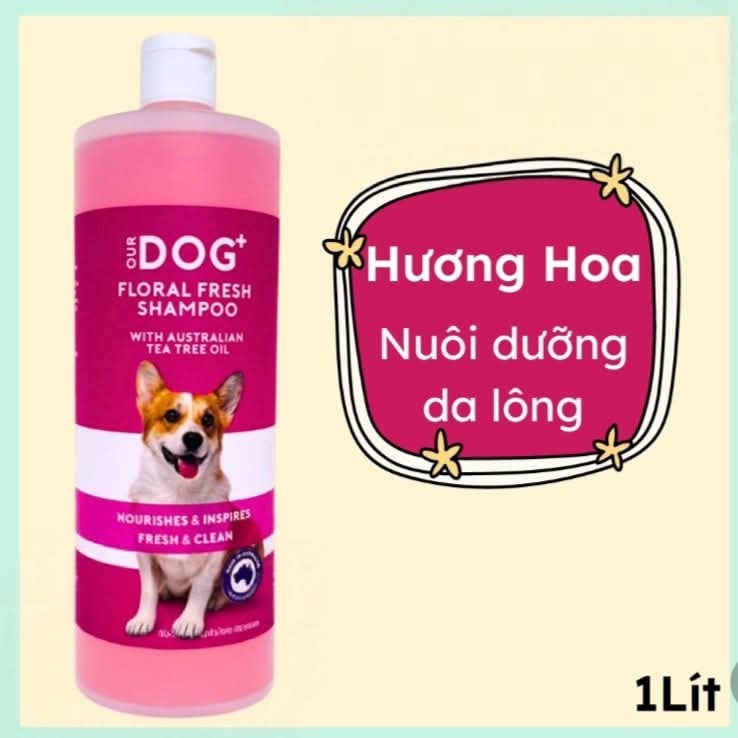 Bộ sữa tắm Our Dog 1l (nhập khẩu Úc) dành cho chó với nhiều mùi và công dụng khác nhau.