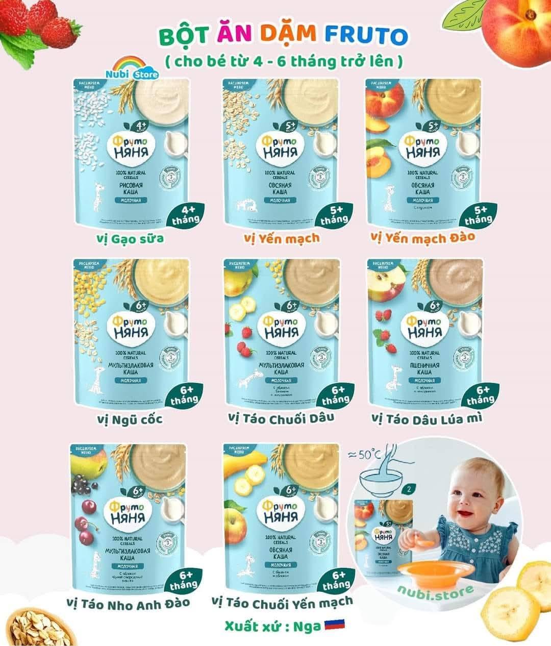 🌽 Bột ăn dặm Fruto thiết kế túi zip tiện sử dụng, dễ bảo quản