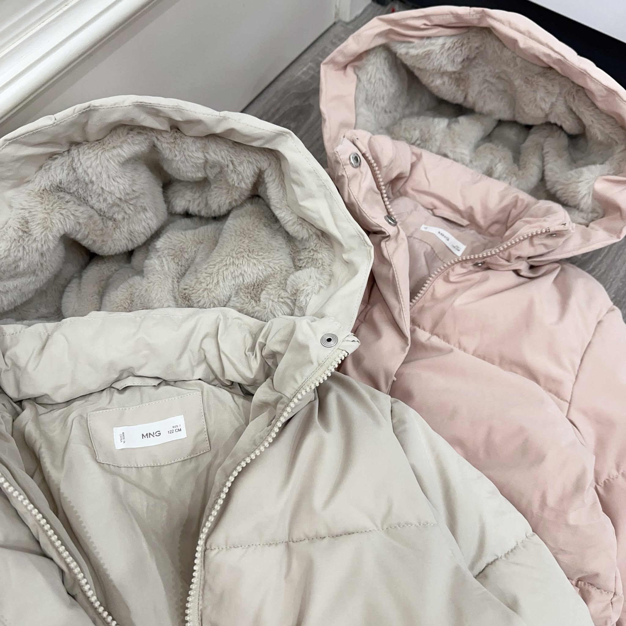 Áo khoác dáng dài #Mang0 dư xịn cho mẹ và bé diện đôi. Chần bông dày ấm, mũ lót lông thỏ mềm mướt, 2 màu pastel cực sang. Hàng dư sl rất ít ạ.
