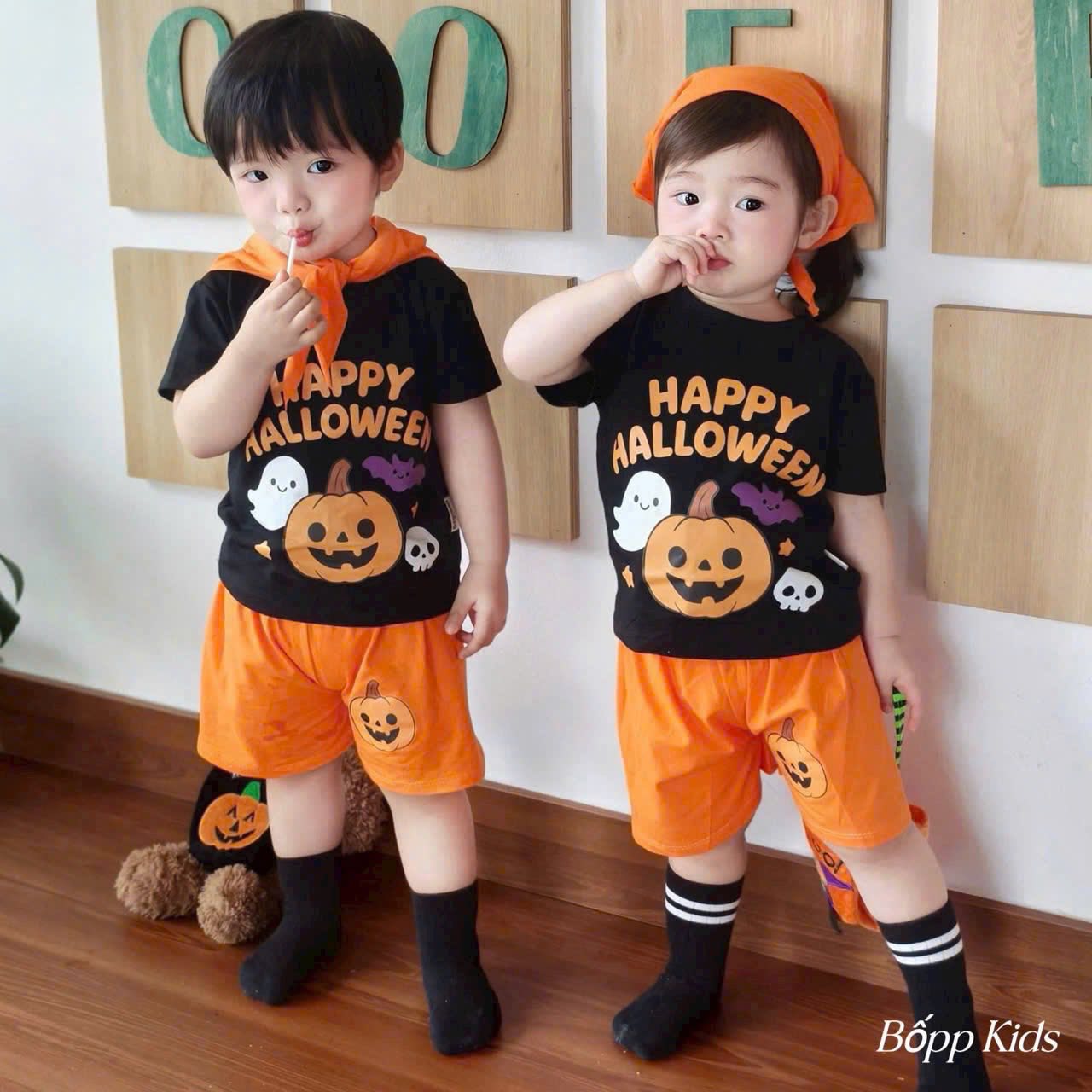Lên sét bộ cộc Halowen 2 màu đen cam nhìn là thấy cưng rui ạ
