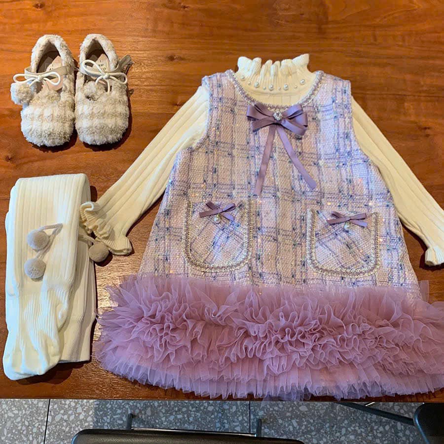 ![[🆕🇻🇳] Su An Kids – Phân phối Sỉ & Lẻ Quần áo trẻ em hàng Quảng Châu CC, VNTK 🧑🧒❤️️👶⭐️ – Set dạ tím hottrend lót lôg + áo len cổ ngọc