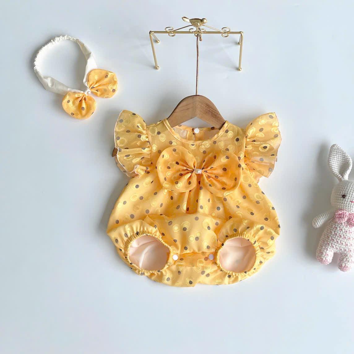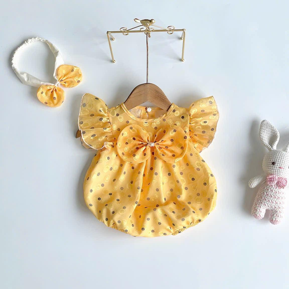 Siêu dễ thương với body tơ vàng chấm bi