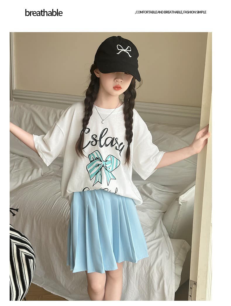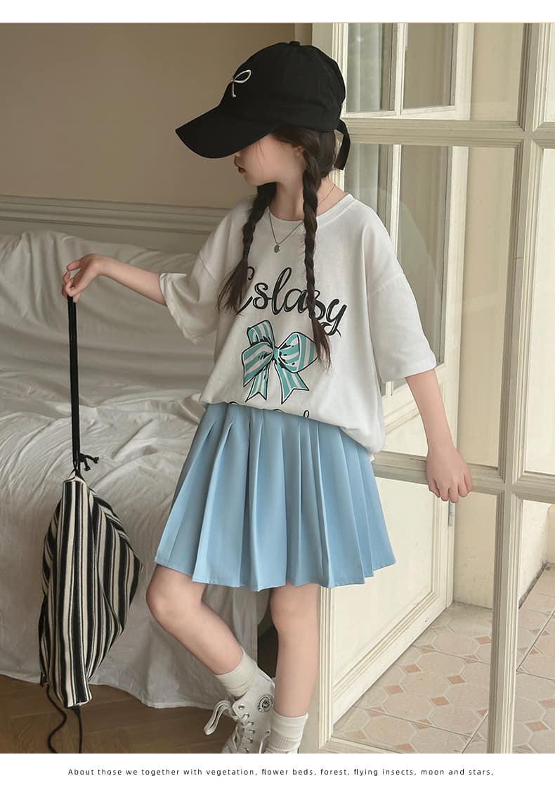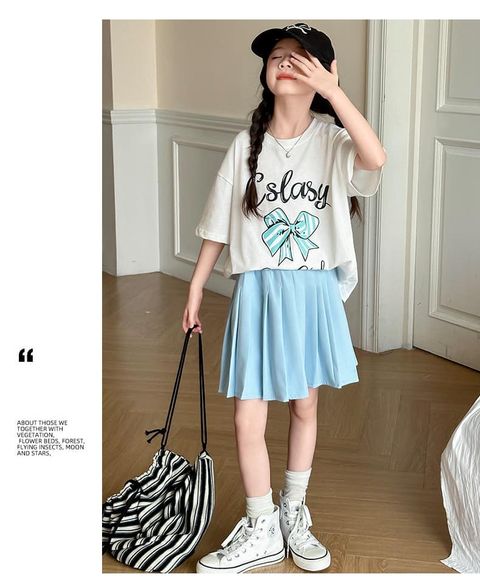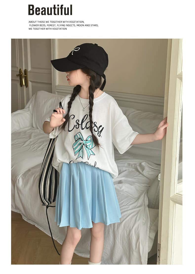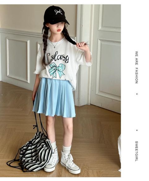 ![[🆕🇻🇳] Thời trang trẻ em cao cấp- shop Yu Yu 🧑🧒❤️️👶⭐️ Set áo thun no trend phối cùng chân váy xếp ly style vừa cá tính mà vẫn ko kém sự ngọt ngào ở đây. Hiếm khi có mẫu tông xanh trời đẹp thế này