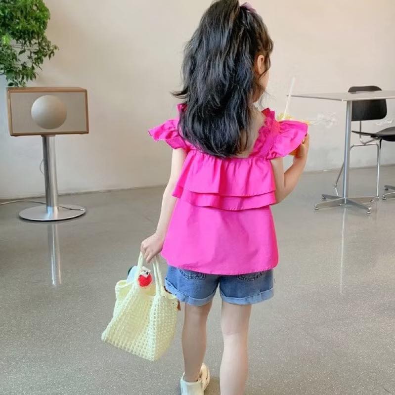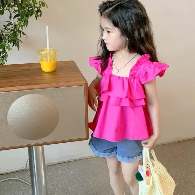 Áo Hồng nhiều tầng, tay cách điệu mềm mại cho bé