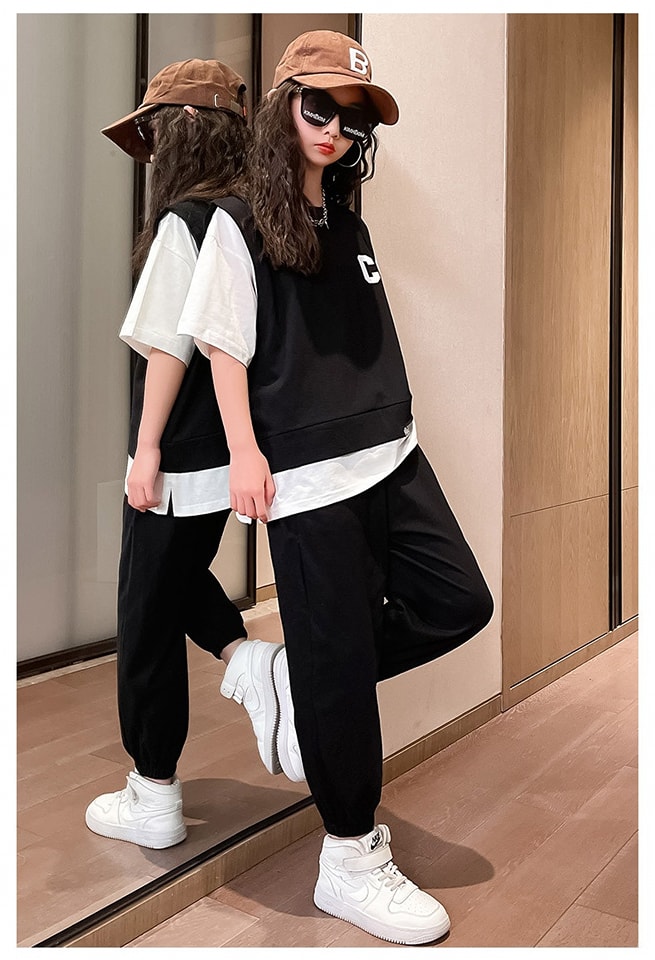 ☘️Áo và quần vải thun cotton mịn mềm mát,áo phối giả 2 lớp cá tính