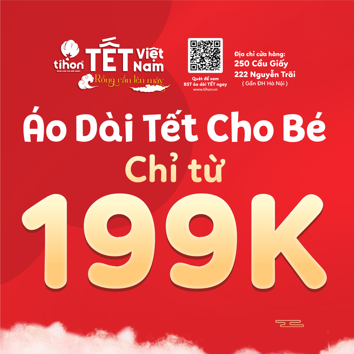 Chào đón Tết 2025, các sản phẩm áo dài nhà Tihon sale sốc với giá chỉ từ 199k, ba mẹ đã có thể rinh về những chiếc áo dài chất lượng nhất, mẫu mã hot trend nhất, và giá thành thì “yêu” nhất