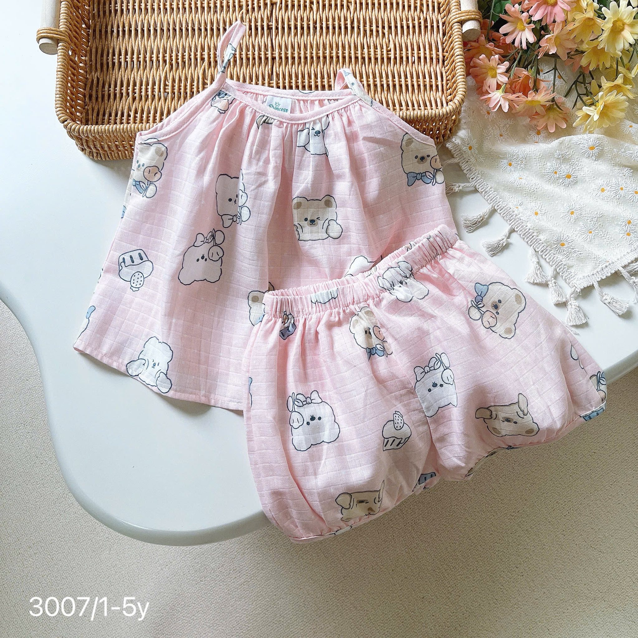 ![[🆕🇻🇳] Tiệm Nhà Ốc (Quần áo trẻ em)-Đồ trẻ em thiết kế, đồ nhập- xuất khẩu,hàng Quảng Châu cao cấp , sỉ đồ thiết kế cho bé nhặt size 🧑🧒❤️️👶⭐️ OP3007- Bộ xô linen 2 dây