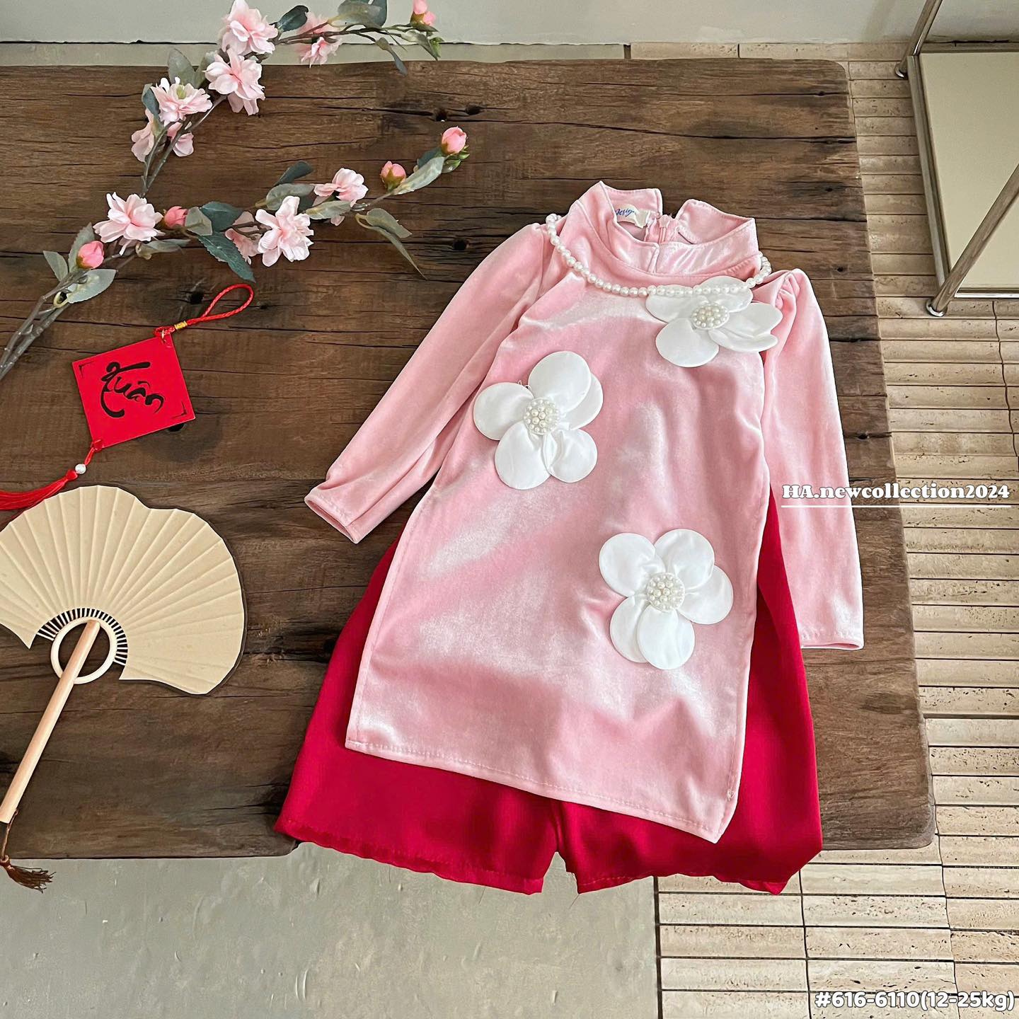 Gom áo dài Nhung bé gái #179k kèm dây chuyền Ngọc trai quá xinh quá sang luôn ạ