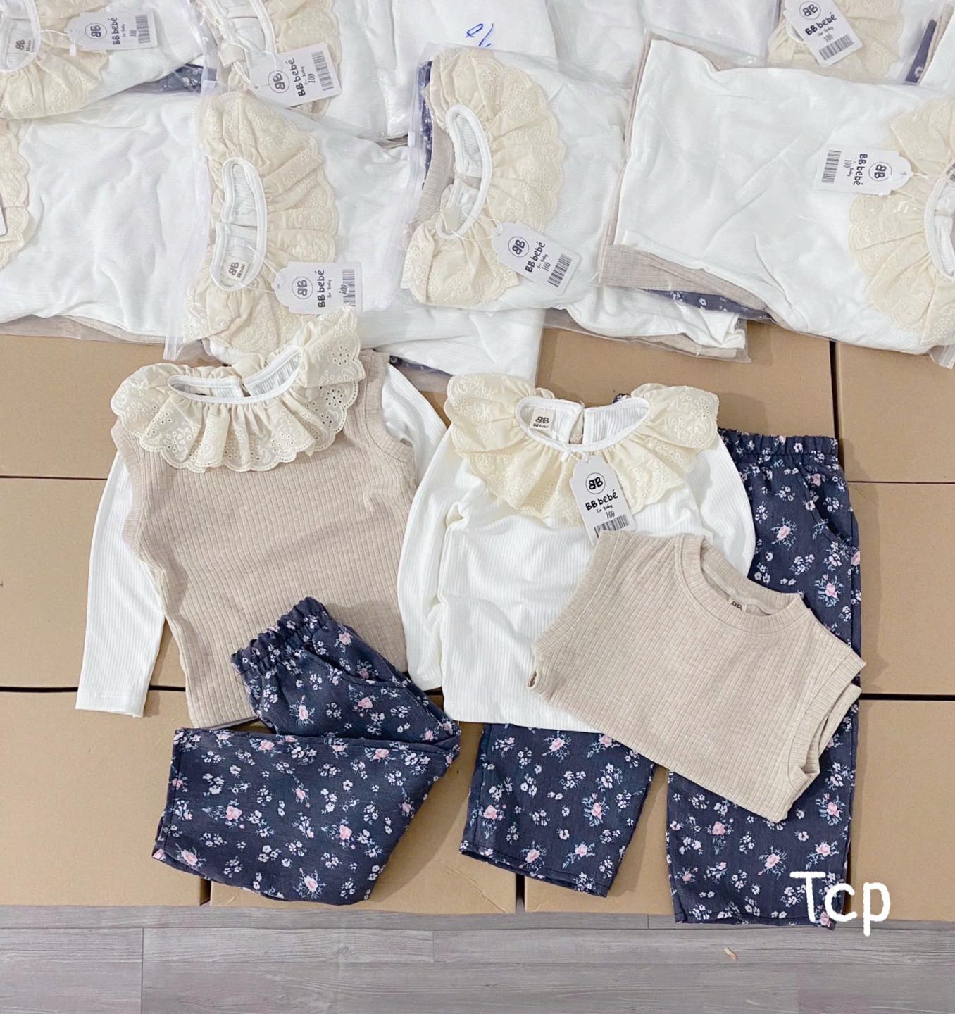 HOT : SÉT 3 MÓN ÁO LEN GILE MIX ÁO LEN TĂM CỔ REN QUẦN SUÔNG TĂM NHUNG HOA NHÍ