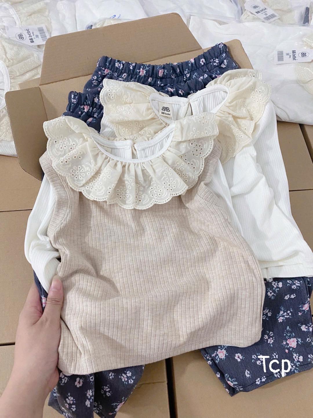 ‼️ HOT : SÉT 3 MÓN ÁO LEN GILE MIX ÁO LEN TĂM CỔ REN QUẦN SUÔNG TĂM NHUNG HOA NHÍ