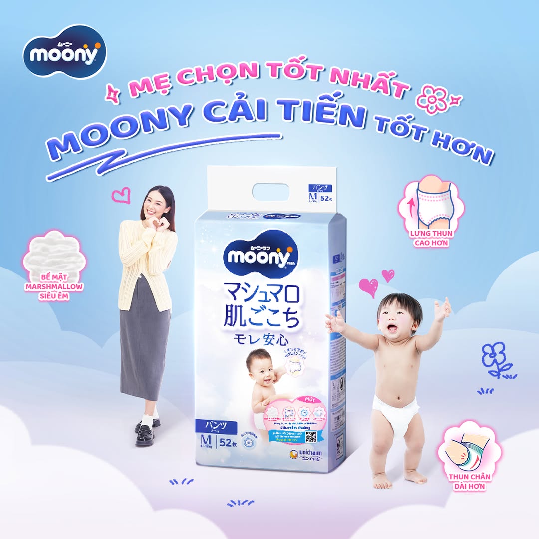Mẹ luôn dành những điều tốt nhất cho bé yêu để bé lớn khôn khỏe mạnh và vui vẻ, từ những bữa ăn đủ chất, bộ quần áo mềm mại đến chiếc tã êm lành 🥰. Vì vậy, Moony Blue không ngừng cải tiến để đồng hành cùng mẹ trong hành trình chăm sóc bé thật êm lành và trọn vẹn. 💫