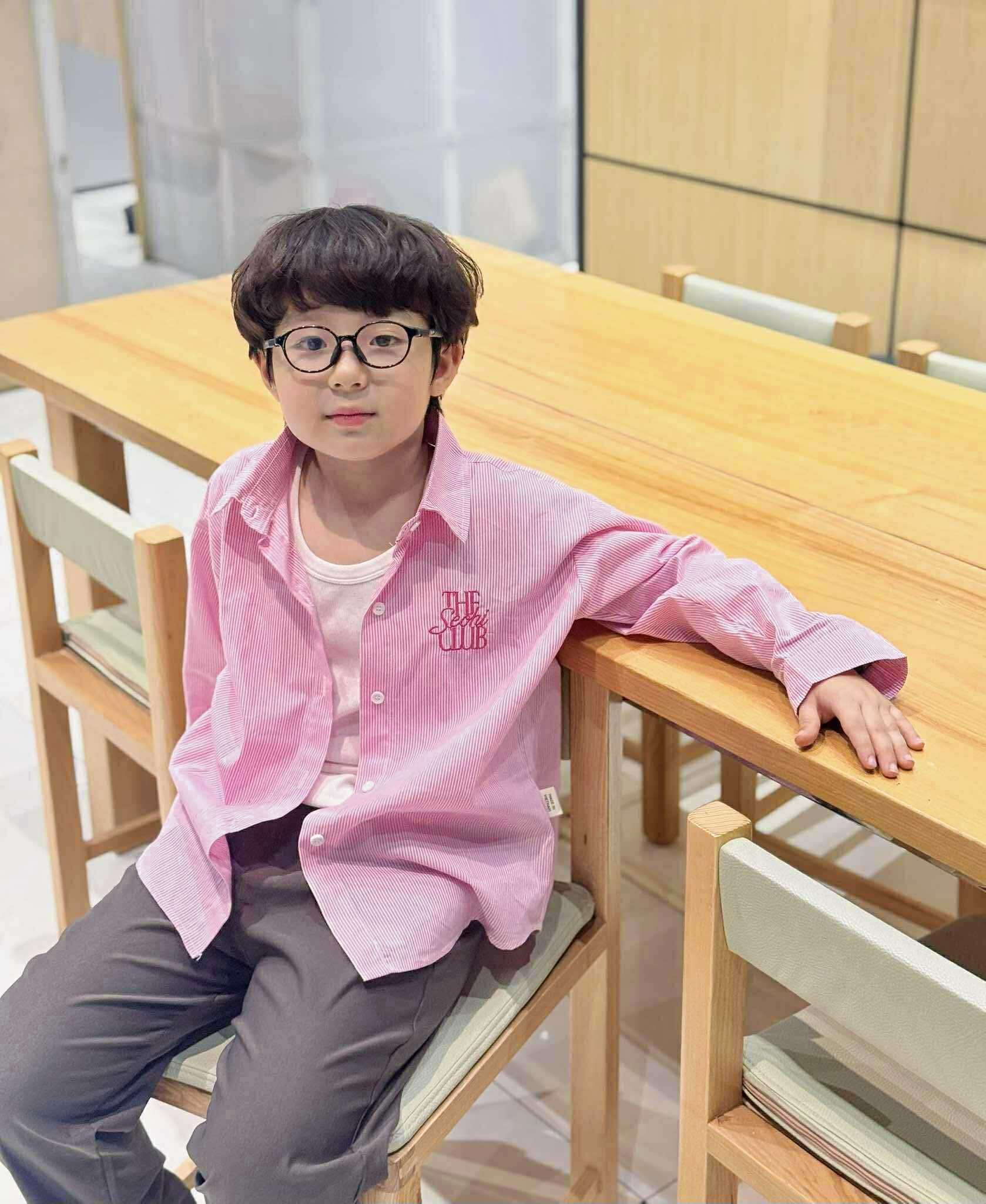 Nhìn bé Dế diện sơmi kẻ hồng “𝑻𝑯𝑬 𝑺𝑬𝑶𝑯𝑰 𝑪𝑳𝑼𝑩” mix cùng quần kaki cotton vẫn cực ngầu, vừa lịch sự vừa thoải mái