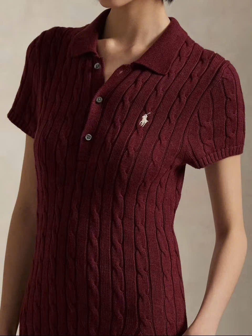 Được thiết kế theo kiểu dáng ôm sát và xòe với phần bo gấu ở chân váy, chiếc váy ngắn tay này được dệt kim bằng cotton và thêu biểu tượng Pony đặc trưng của hãng trên ngực giúp các chị mặc lên vô cùng xinh yêu